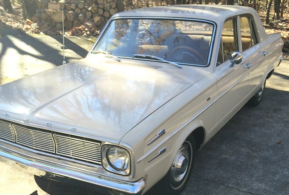 My mother, the proverbial little old school teacher bought a ’65 identical to this over the red 2 door bucket seat dart. Reason, she said the red was too much of a hot rod looking car that I would race in. Yup, little did she know that the 4-door was a sleeper. It was a special order with the 273 boosting almost equal horsepower per cubic inch. It had a Carter AFB and a 3/4 race came in it and the exhaust had the square tail pipe and a beautiful rumbling coming out of it. Every Friday/Saturday night I’d take that little school teacher car out and blow mustangs, goats and SS Impala’s and anything else off the road. The first night she bought it and brought it home and I took it out to drive it and felt the power in that sucker, I smoked the wheels &I had to pop the hood and feast my eyes on a monster. When we’d go out to race, the cars owners that I’d beat always wanted to look under the hood and couldn’t believe it was a “stock” performer. One of the more fun cars to own. The one pictured above, thanks for the memories. One more thing, mom figured out what she had as one morning she was driving us to school and we were sitting at a light right across from where the street narrowed from two-lane, the light changed and the car next to us started to take off & cut us off, she floored it and looked over at me and smiled and said, “he thought he could beat me”. Loved it.
