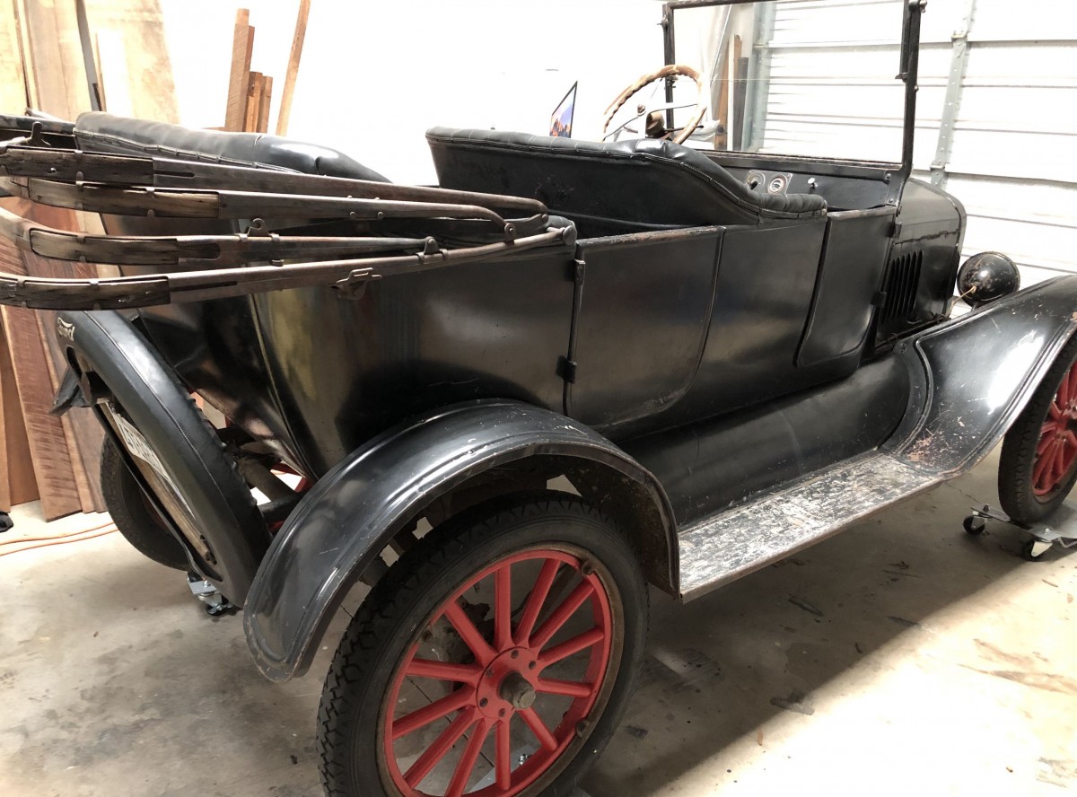 Seller’s Description: 100% complete, original unrestored. Sheet metal good, no rips or tears. The wood is excellent, the interior good, uninstalled new top. California car, stored for over 10 years. Firestone tires weather-checked.
