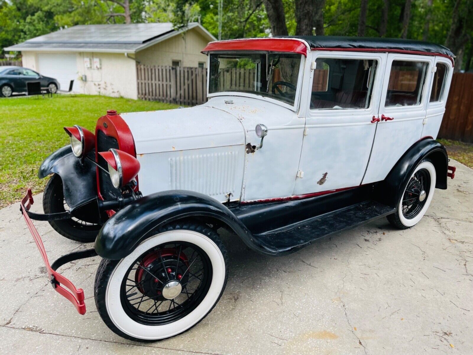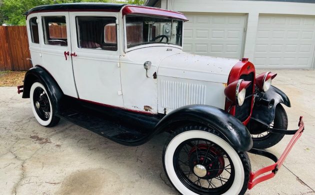 Seller’s Description: Listing this 1929 Ford Model A Fordor. This was found sitting for some time. The engine spins over by hand but it has not been started or ran in some time, so it is being listed as a non-running full restoration project. It does roll and steer easily when pushed. There are signs of rust, bondo, fiberglass patches, metal patches, and wood rot. The door handles and window cranks are loose. The top was never finshed and not nailed down in the back. There is good Florida title for it, that matches the engine vin A1004458. There are some extra parts, see photos. I listed this on ebay starting at $1.00 with a no reserve, check it out on there along with 239 photos. Thanks