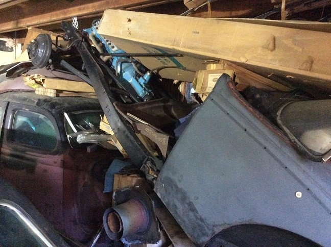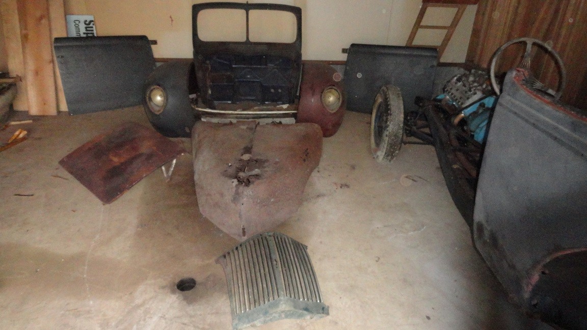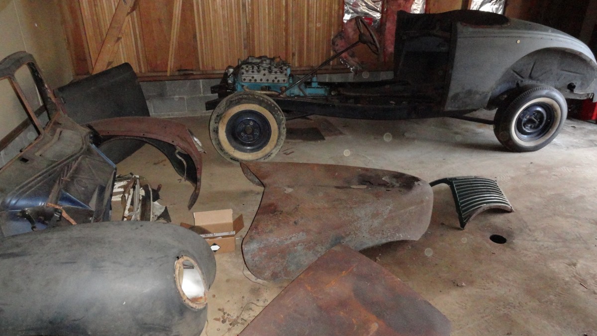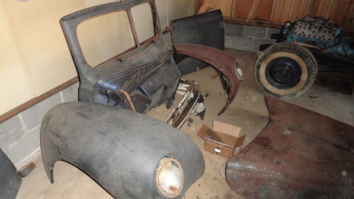 As the collection grew and space became limited, the restoration was put on hold and this car was stored on top of another. This convertible has recently been lowered to the floor and the parts shown pulled together for sale.