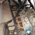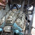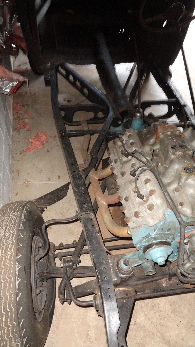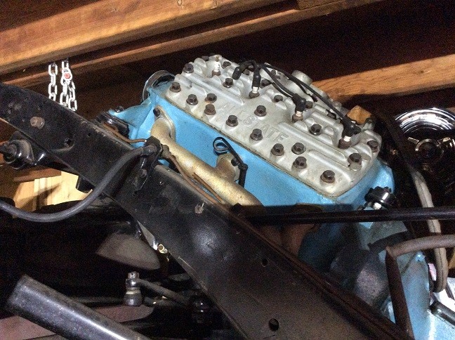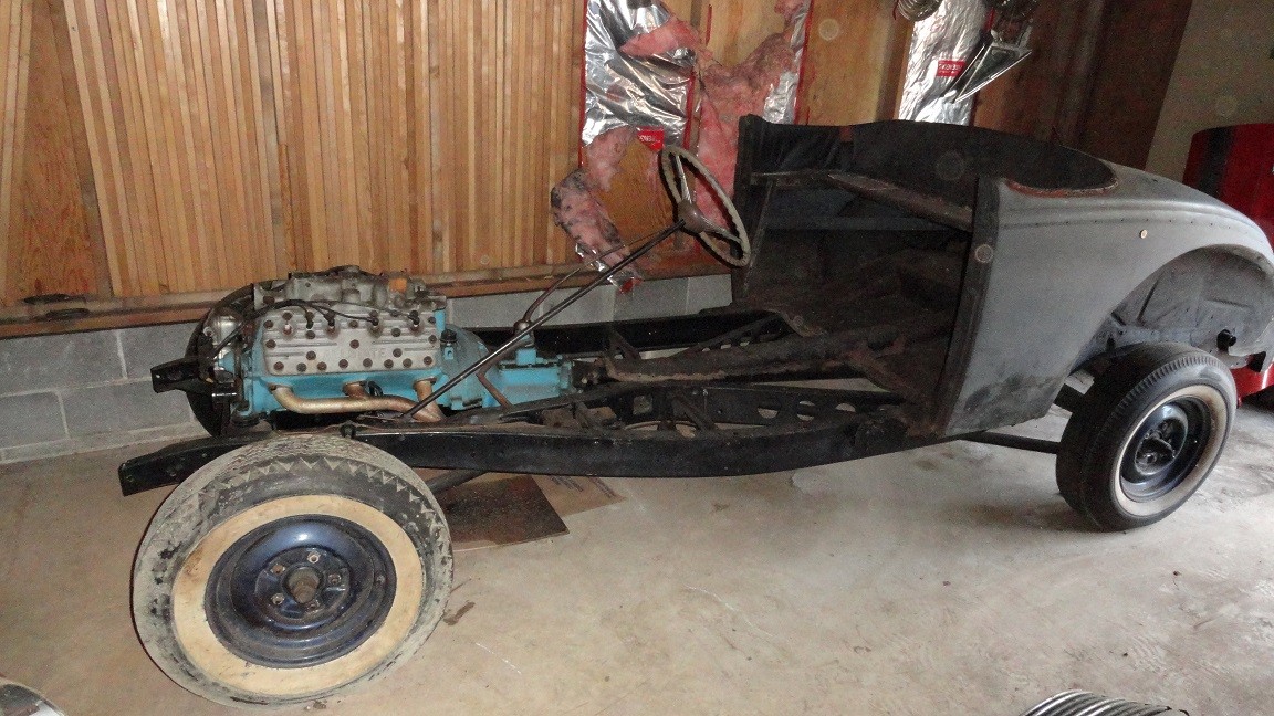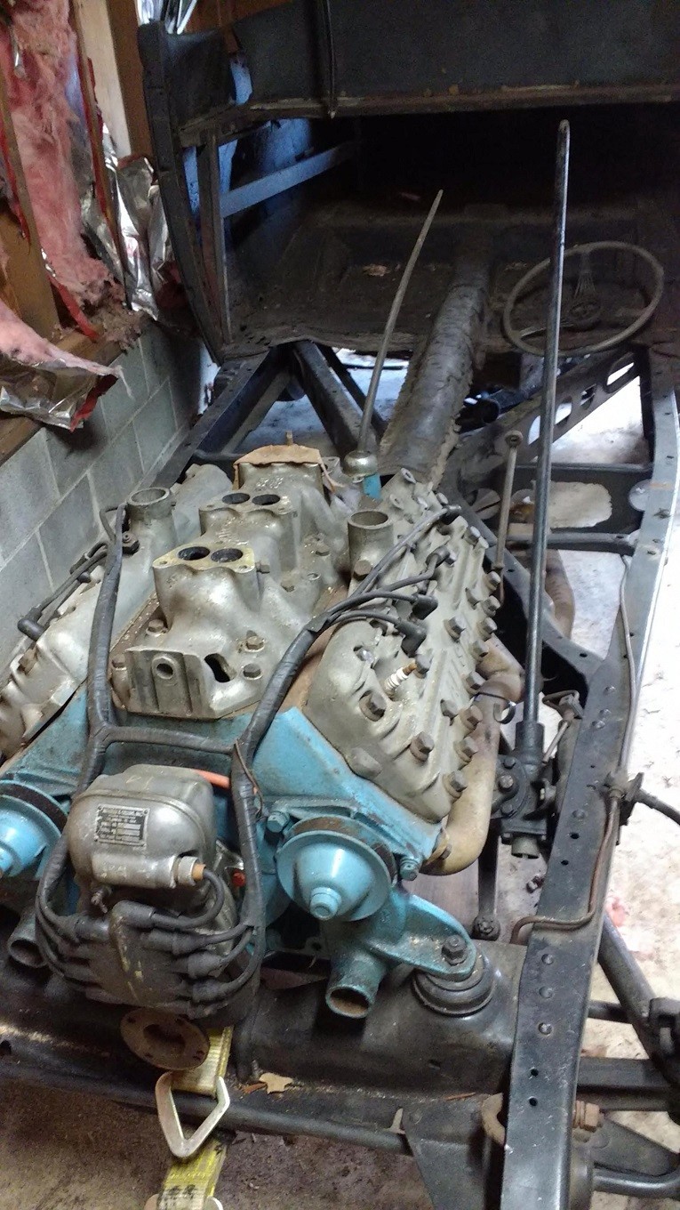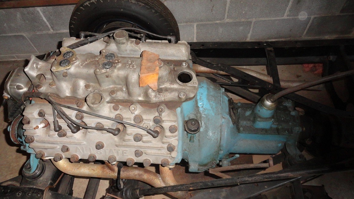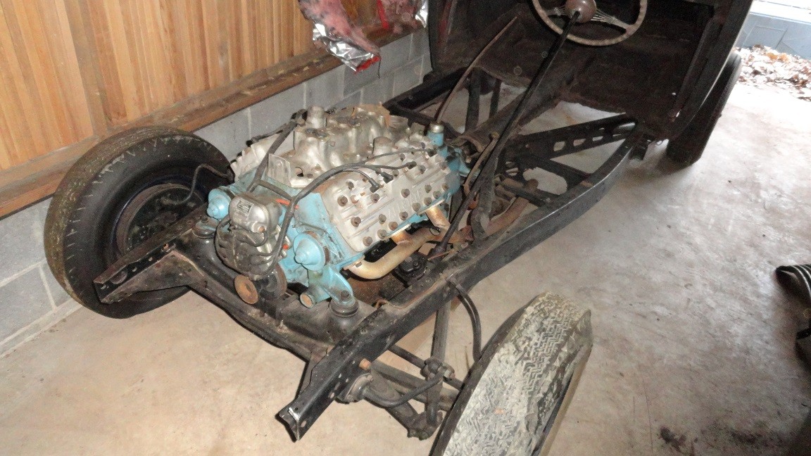 This 1939 Ford convertible coupe was purchased in 1957 and became the first of a substantial classic car collection in Akron, Ohio. A full restoration was started on this 2-door convertible at some point with much of the body panels, etc. removed. The unique engine (see photos) appears to have been fitted to the car decades ago and the frame cleaned up nicely. The engine turns free and easy.