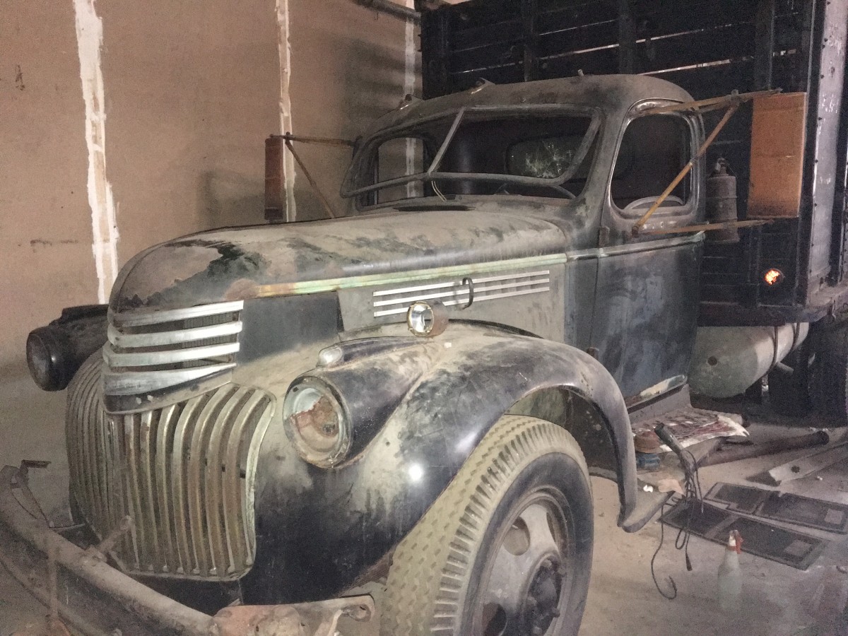 Seller’s Description: This is a 1946 Chevy 2 ton watermelon truck. Her name is the Gipsy Owl. I bought her when I was 17, it was my first vehicle. She was sitting in an Esso gas station up in Oysterbay New York, and we barely made it back to my home. She used to haul watermelons from Eastern Long Island to NYC for 20 years. Gipsy already had a 1953 235 engine put in it, not the original flathead 216. I rebuilt that 235 engine, it was the first time I ever rebuilt an engine. Then I put some bows across the top of the wood stake sides and put a canvas over it to make a covered wagon. I had a potbelly stove in the back, had a loft to sleep on, and I traveled around the US as a gipsy. I built musical instruments and repaired them, and I am a musician, so I had my fiddles with me and mandolins and guitars and played in various bands, and winning several fiddle contests. As I wandered through the US, I collected many license plates in all the states I visited, and as it got colder I started nailing the license plates between the slats in the sides of the truck, because the wind would blow in under the canvas in the cold. If you look you’ll see a few of those plates still left up there. The whole stake sides are oak. The last place it was licensed was Wyoming, as you can see from the bucking bronco. By the time I got out west, that 235 was not enough for the Rocky Mountains, so I bought and installed a two speed rear end in Tucson all by myself. I almost got killed when I had it up on concrete blocks and one broke and I was pinned underneath, but obviously survived. It is a vacuum takeoff rear end, and gives you four more gears. That also brought it up from 1.5 ton to 2. I traveled for several years until finally coming back home to New York and finding my parents were getting divorced and selling the house, so I towed one of my Morris Minors with Gipsy, and moved down to Atlanta. Once here I didn’t drive the truck that much, I rented it out for a couple of movies like Greased Lightening with Richard Pryor, etc. But then it has sat here for 30 years in the back of this warehouse. Vandals used to throw rocks at the building’s windows and break my outside windows and then also break the windows of my cars. But the glass is all flat glass so it’s easy to repair. I was going to restore her last year, and bought a 6V battery, which I keep well charged. I also bought a lot of the specialty bulbs and lenses for this truck, and also bought a very rare expensive crank for the front windshield (which I will only sell separately). This car also has a front crank starter that you can do manually, but you gotta watch out because it will hit you in the face and knock you out if you’re not careful. There are also giant tires on split rings that are dangerous from what I’ve heard. But I’ve never had any problem with them. This is my first love, and whoever buys it better love her as much as I do. The last photo was when I was 17 somewhere in TN. BTW you prolly already know this, but she has no synchros, so you must double clutch to change gears. It’s a shitload of fun to drive. Even back in the 70’s as I traveled, every passing truck driver would honk or wanna stop and see her. Whoever buys her can hear a lot more stories about my adventures with this incredible vehicle if they want. It is a magical truck with very good mojo, and if you take good care of her she will bring you a lot of joy in your life. But I will most likely cry when she sells…