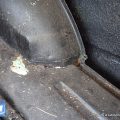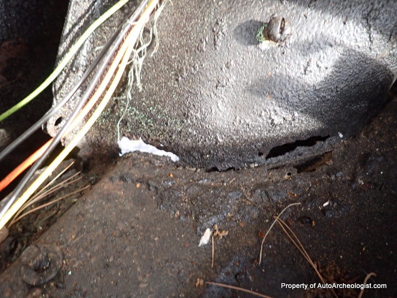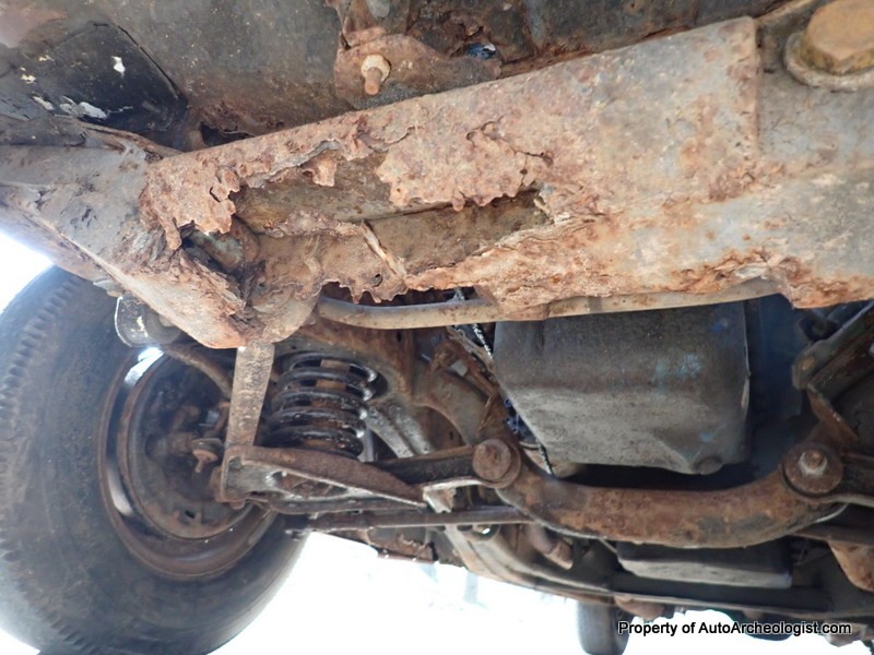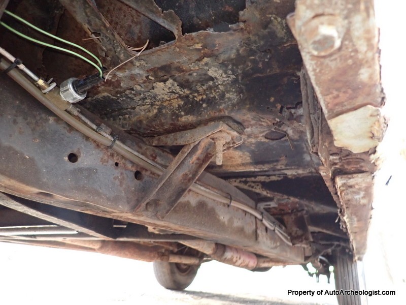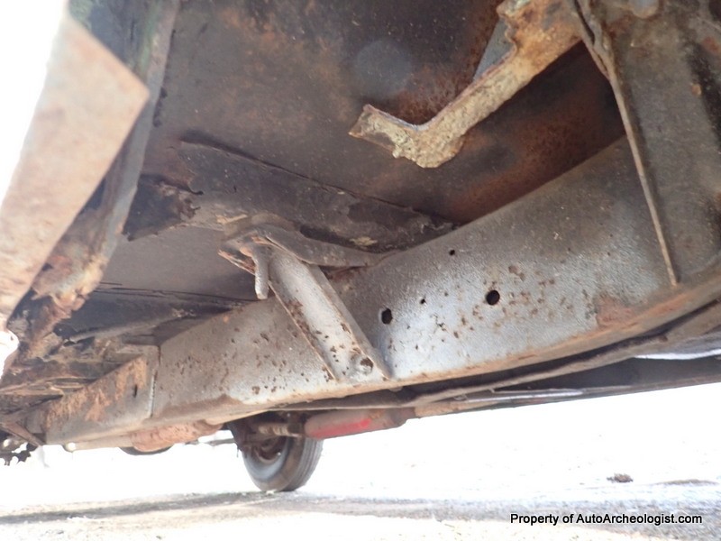 The worst area is the very front most cross-member, it is rotted in the center, but, if going the rat rod route, clear out the rot and weld er up. A couple of the body mounts are bad too, but they’re readily available from several online sources, the door bottoms have some perforation as well.