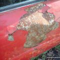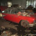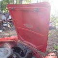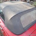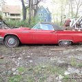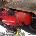 Originally coming out of the factory in Bronze metallic, with a white top over a Bronze vinyl interior, in the mid 80’s she was restored to this red and black combo, with a black and white interior. She was driven very little and then sold to the brother in law of the current owner. He drove it for awhile and then sold it to the current owner, it was registered and driven a little more and then for reasons unknown, she was driven into a garage around 1991 and she’s been there ever since. Luckily, the garage had a concrete floor and the car was moved in and out in order to get other cars in for various needs, but roughly 20 years ago, most activity stopped at the garage and even the garage fell under disrepair. Just recently the roof of the garage fell in and a rafter bumped up against the right door. The car was pulled out, cleaned off and at this point in her life, it’s been decided to let her fly off to another owner.