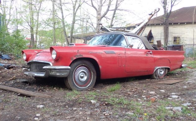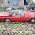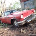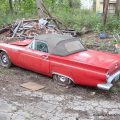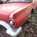 The real shame here is the paint. Lots of it peeling off. The rest of the car is solid enough, even the interior, that one might consider getting her up and running and drive her in a patina’d state. But the paint is, for me at least, beyond that point. Another issue is the engine doesn’t really turn by hand. I was able to get a little budge but not enough for me to say she turns by hand. She is an H code 312 with 4 barrel though, routed through a Fordomatic auto transmission. The 312 was rebuilt and still shines underneath. She should be pushing out 245 HP and up over 350 lb ft of twist.