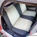 The interior is in OK condition, the seat and door cards are cleanable/restorable, there are some lumps in the dash and a bunch of the chrome bits have pitting.