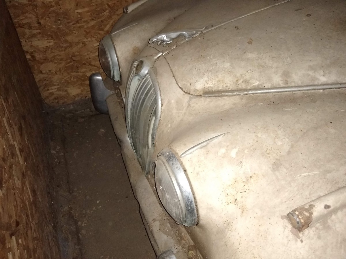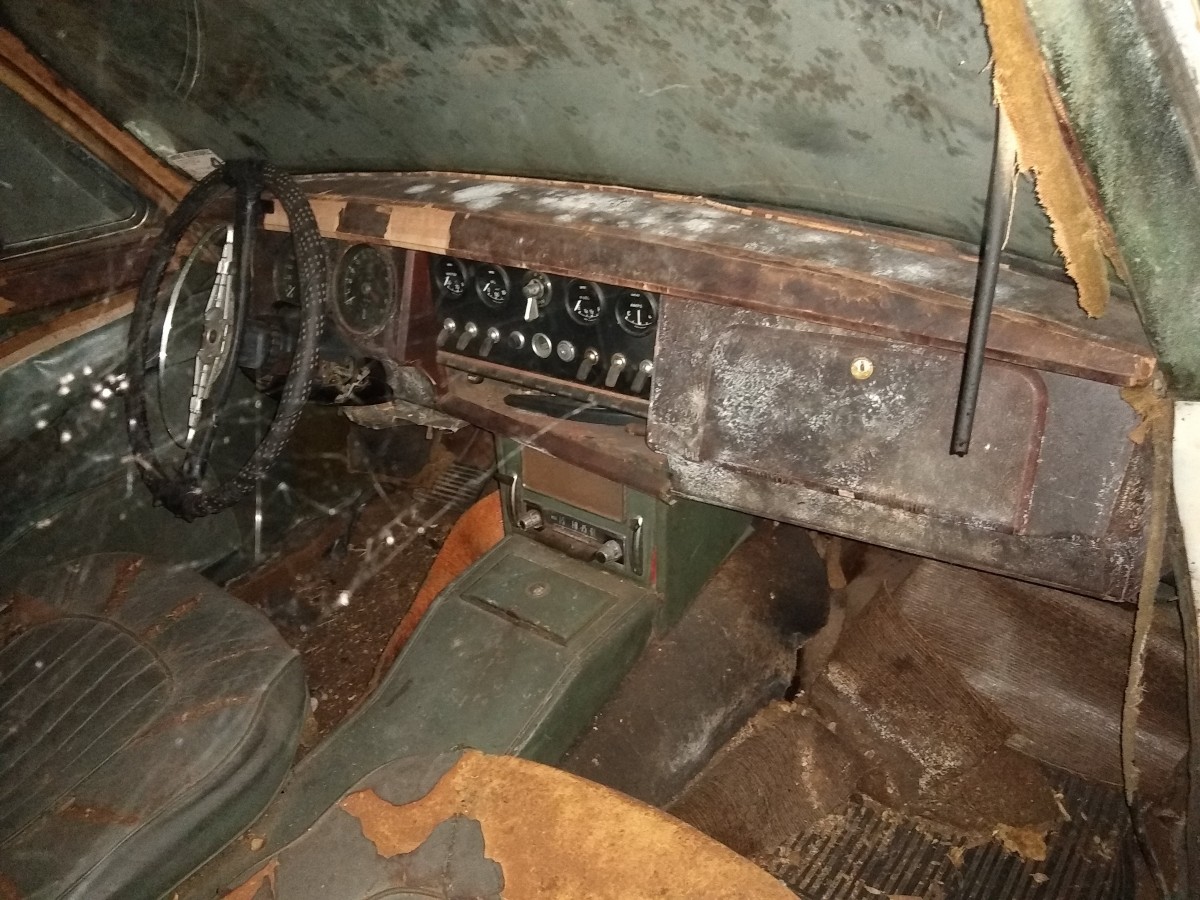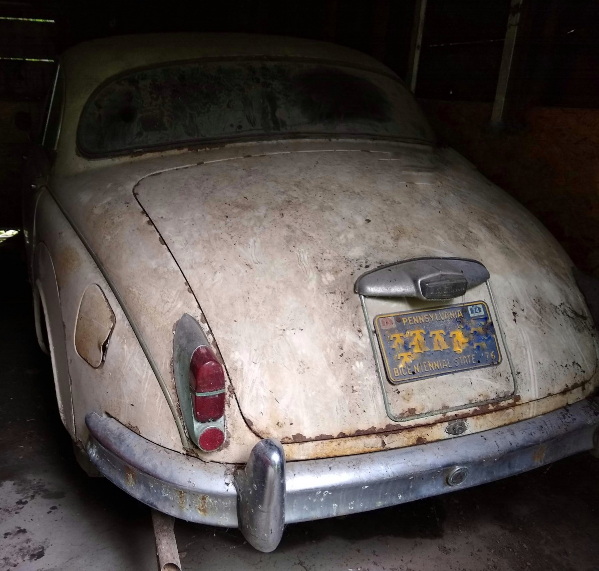 Seller’s Description: Truly a Barn Find!! This was my restoration project in the ’70s, the last time it was on the road. Life happens, but the restoration didn’t ;-( This old Jag needs a new home, I’d like it to go to someone restoring an old Jag, rather than scrap. Most of the parts are present, some are in the trunk. The engine and transmission are original to the car. The front windshield (windscreen ;-) has a crack, local vandals. No title, no keys. Must be picked up between 19-22 October. Best offer!!