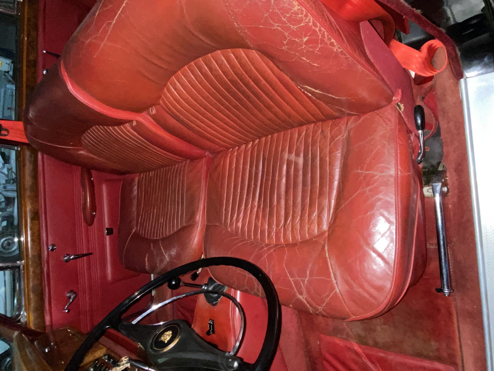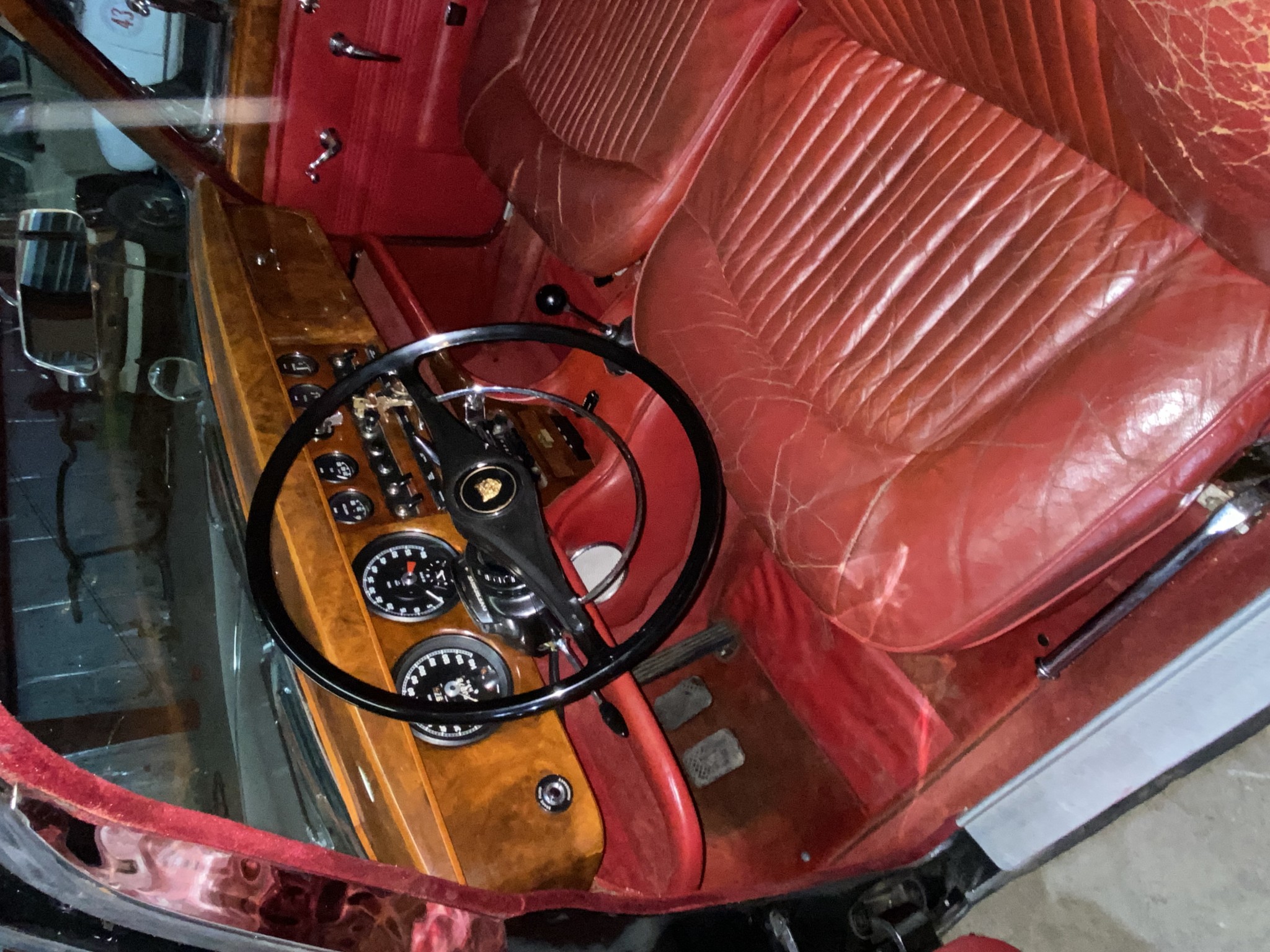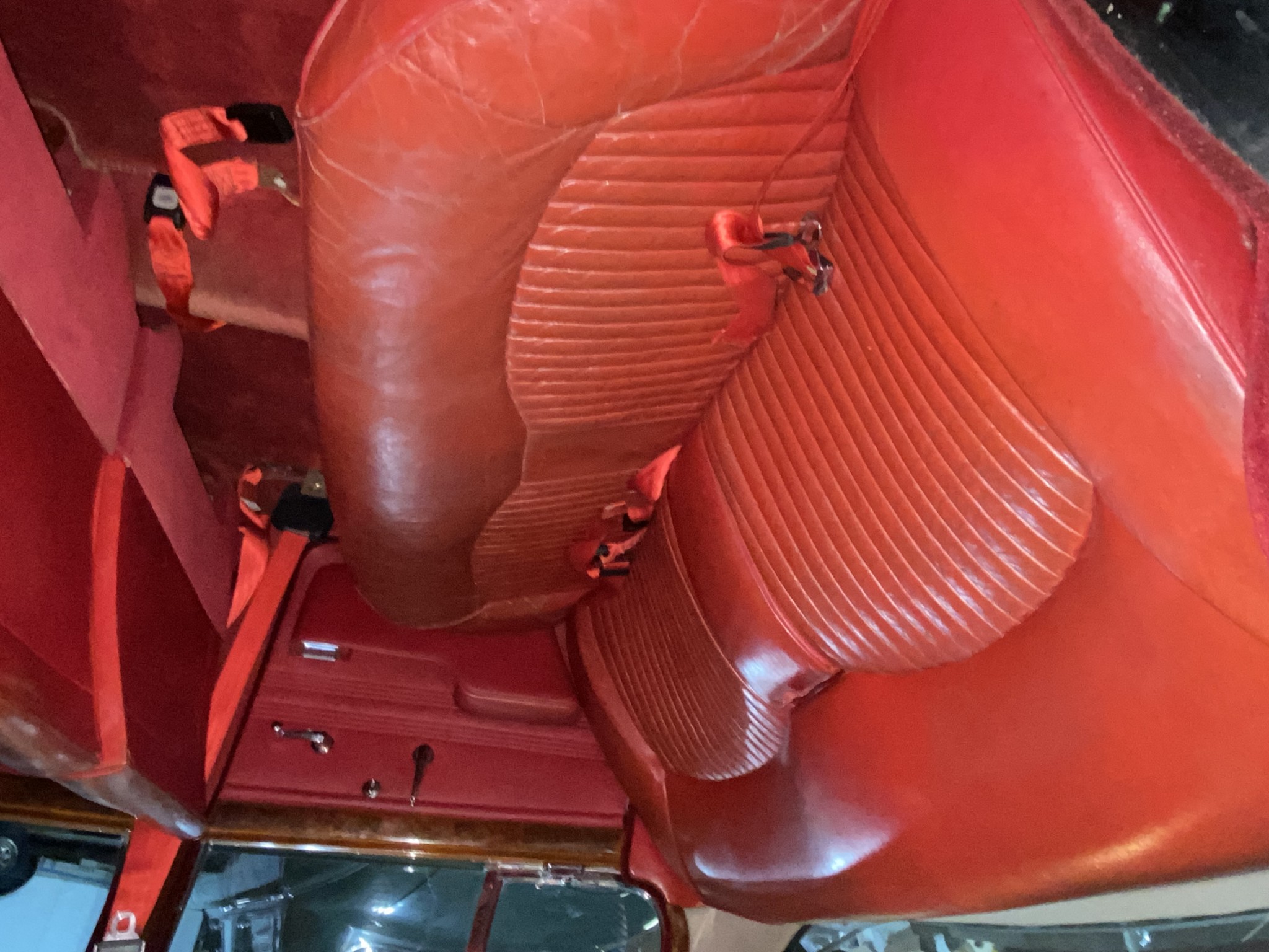 Seller’s Description: Delivered new to Colorado, this is a 2 owner, rust free example. Manual transmission with electric overdrive. Still retaining its original red leather interior with, with recent and correct wool headliner. This car has been in 5 years storage, runs well, but needs the brake system serviced. An extensive file is included with this 3.8S, outlining its service history. Window sticker & full documents from new, as well as all books and manuals.