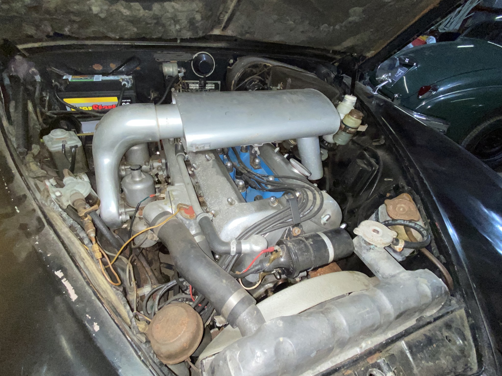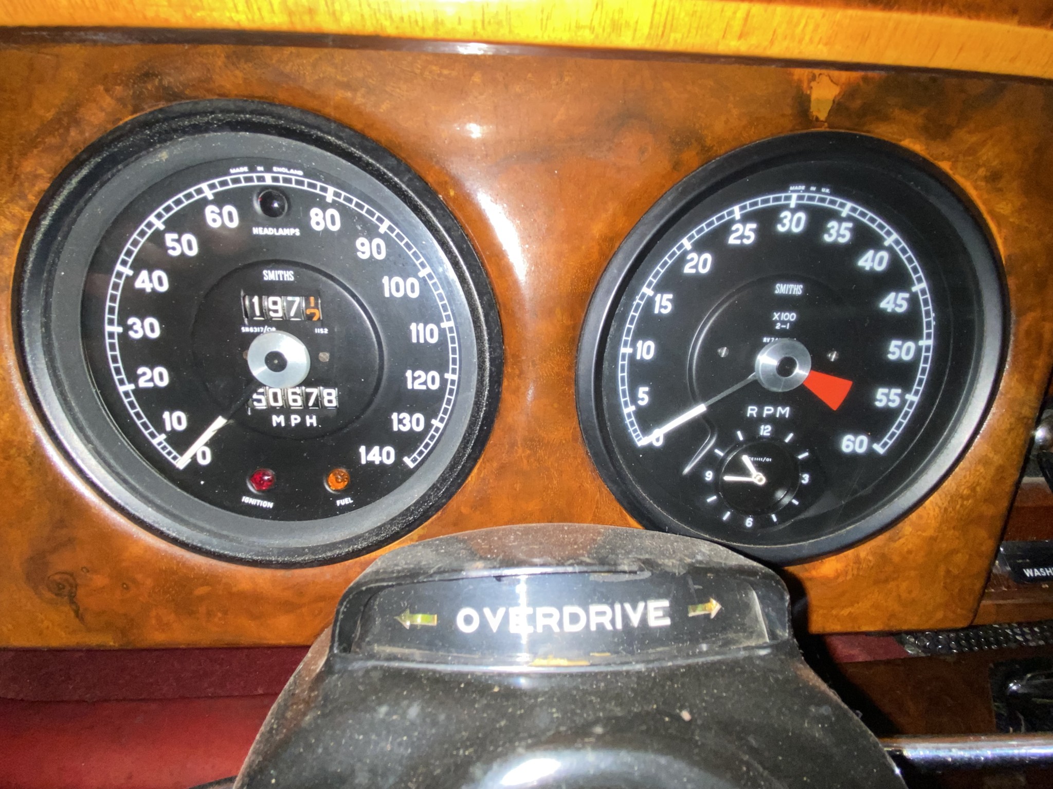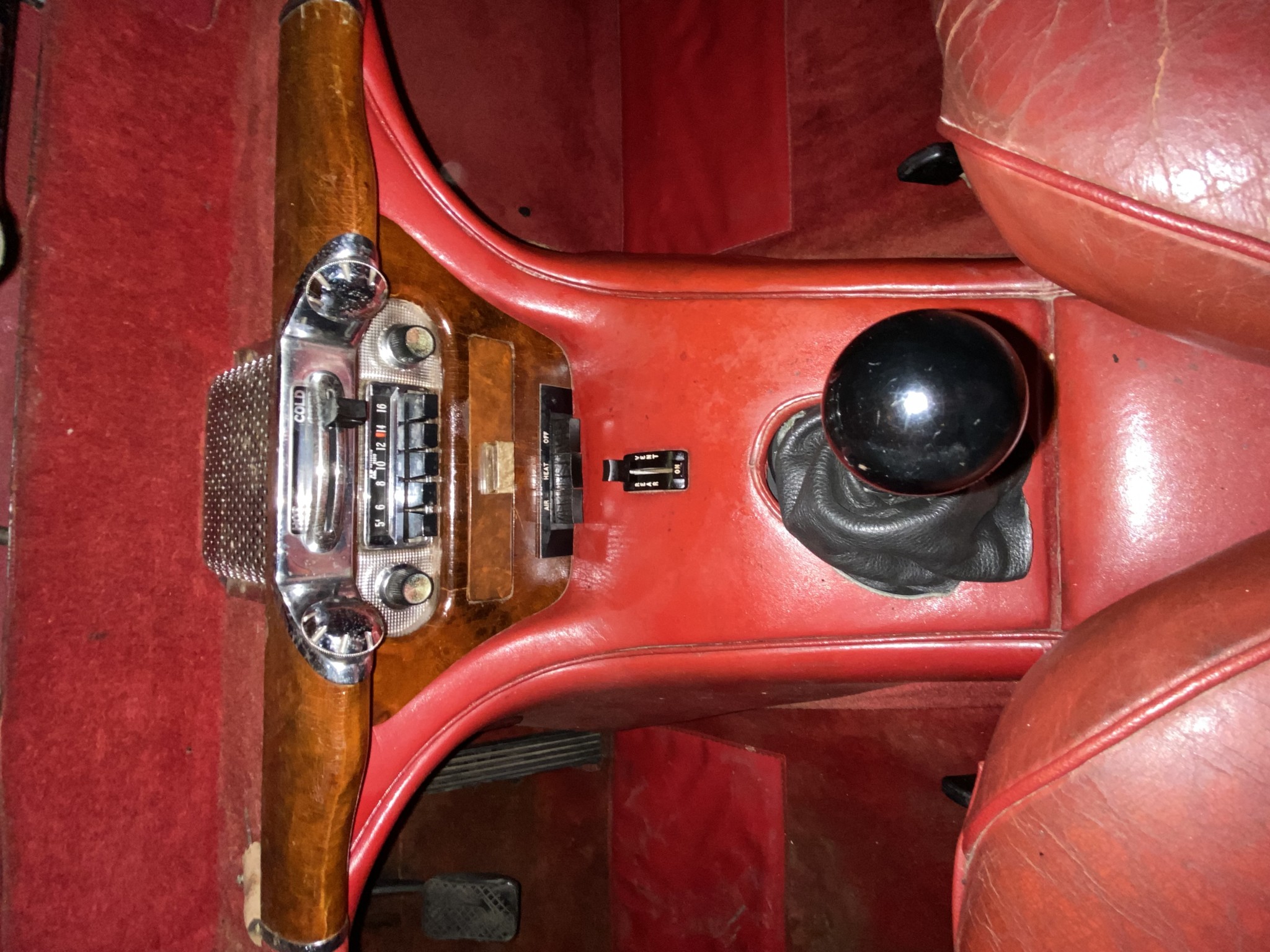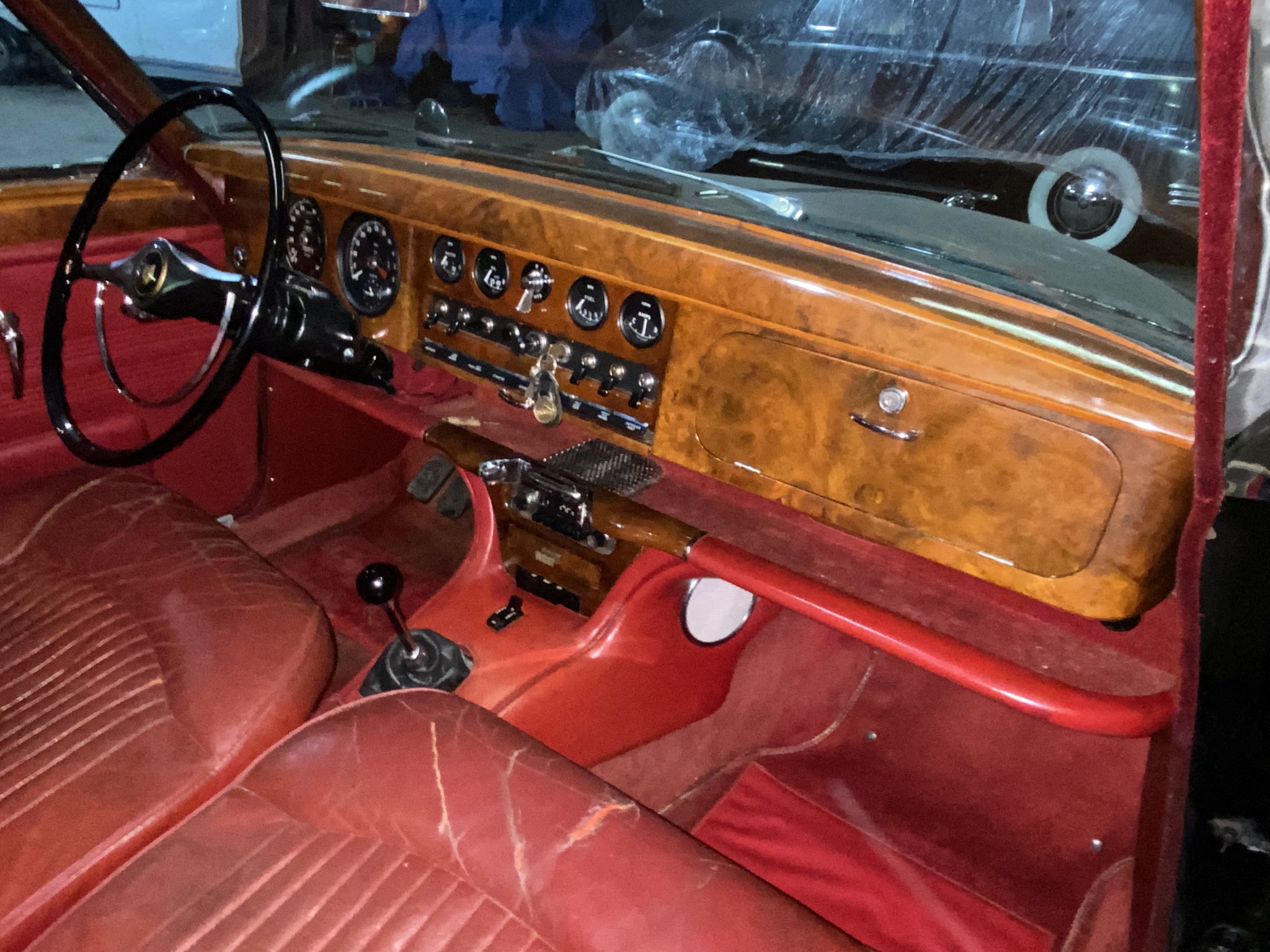 Seller’s Description: Delivered new to Colorado, this is a 2 owner, rust free example. Manual transmission with electric overdrive. Still retaining its original red leather interior with, with recent and correct wool headliner. This car has been in 5 years storage, runs well, but needs the brake system serviced. An extensive file is included with this 3.8S, outlining its service history. Window sticker & full documents from new, as well as all books and manuals.