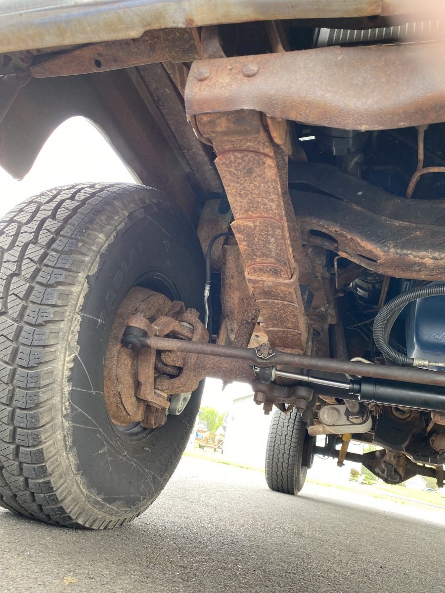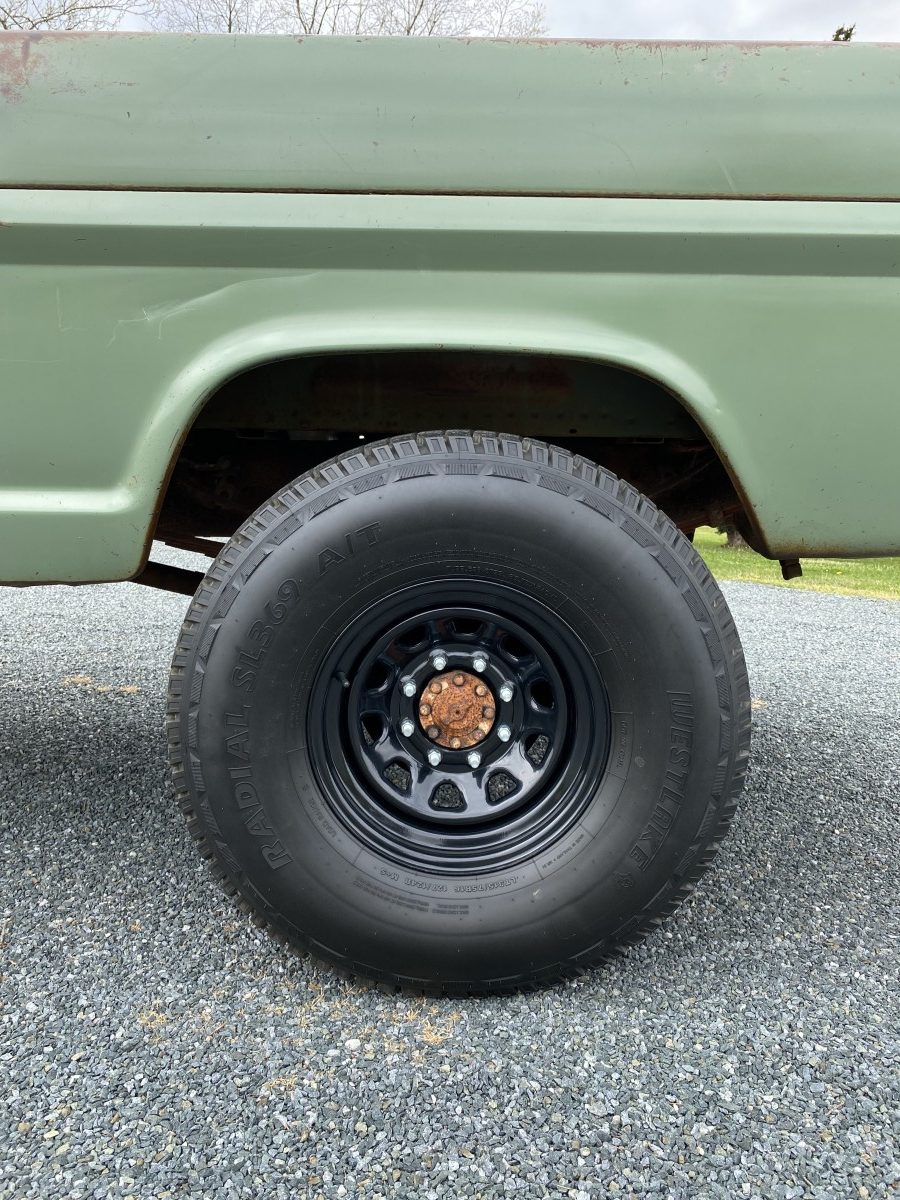 The 390 is mated to a C6 three-speed automatic transmission and an NP 205 divorced dual-range transfer case. Dana 60 front axle with manual locking hubs and a 4.10:1 Dana 80 rear axle. Bendix style manual steering with power assist. New power steering pump and steering shaft. Power brakes with new front disc brakes and rear drums. New in-cab 18 gal fuel tank. New 16″ Pro Comp wheels with Westlake Radial SL369 A/T (LT315/75R16 127/124R M+S). New windshield and gasket, new rear window gasket, new driver’s side door seal. Flowmaster mufflers.