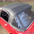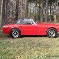 Everything about this car is good. Solid body, nice, even paint, top is like new, seats are pretty firm and have no tears, the padded dash is also tear/crack free. The tires are a “Metric Radial” in a 13″ size and are in great condition, wrapped around the stock Rostyle wheel. The air cleaner and twin SU carbs funnel the fuel into the 4 cylinder under an aluminum valve cover and out through a straight pipe exhaust and a sport muffler. Disc brakes up front and drums out back bring her to a halt. Nothing power on this little car, that you put on and wear more than get into, especially if you’re over 5’10”, once in though, there is plenty of leg room. The roll up windows work as they should, the top folds down easily, you can do it all sitting in the driver seat. The lights all work, wipers, heat/fab, even the horn.