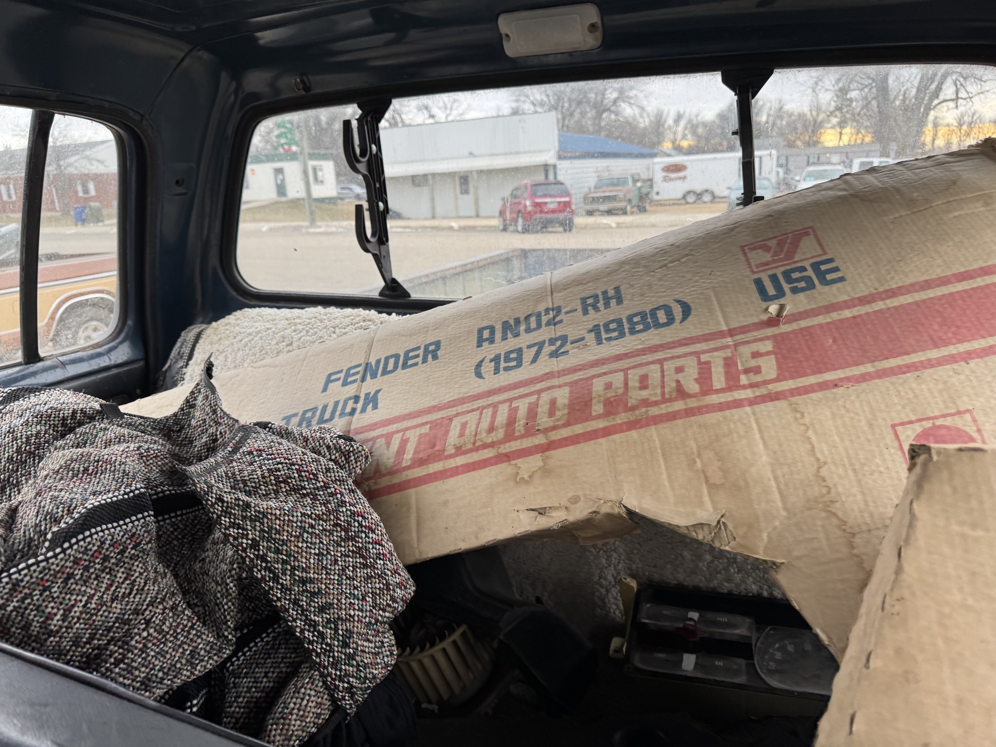 EXTERIOR- The body is in good shape. It has new front fenders that come with it. Some rust on box but overall very solid. . See the video for an up close inspection. Text Dirk at 605-695-7391 for running and driving video’s