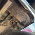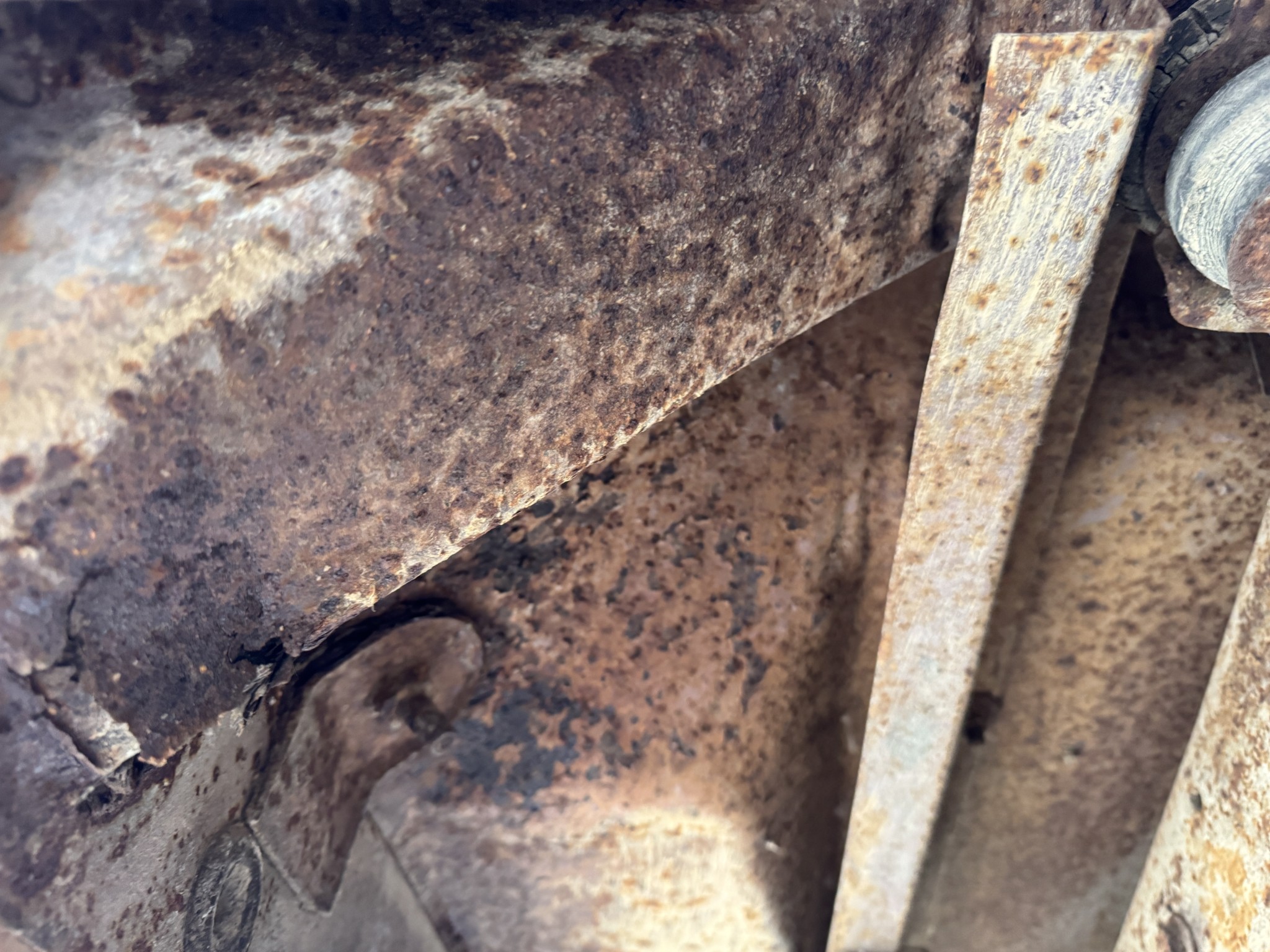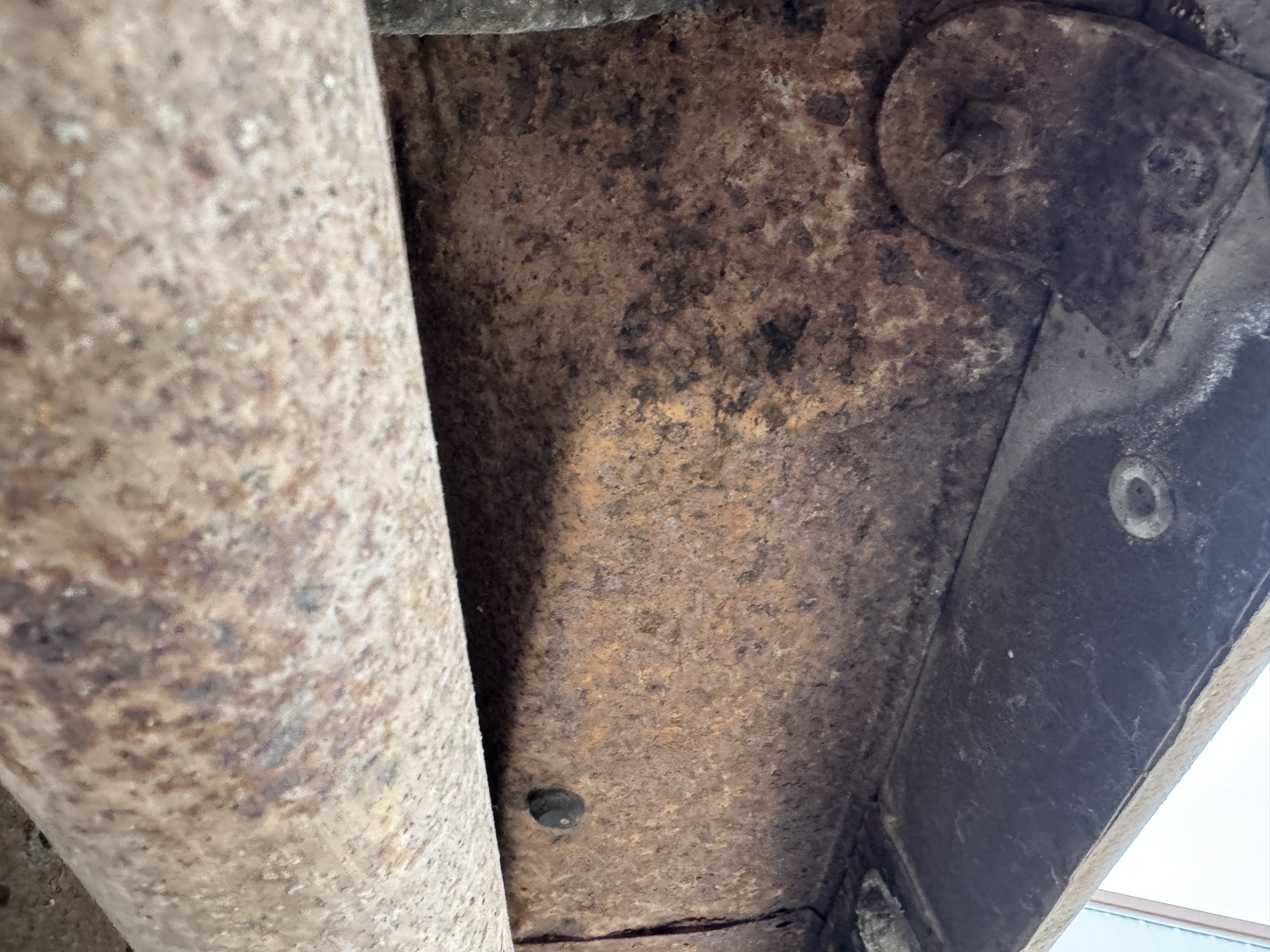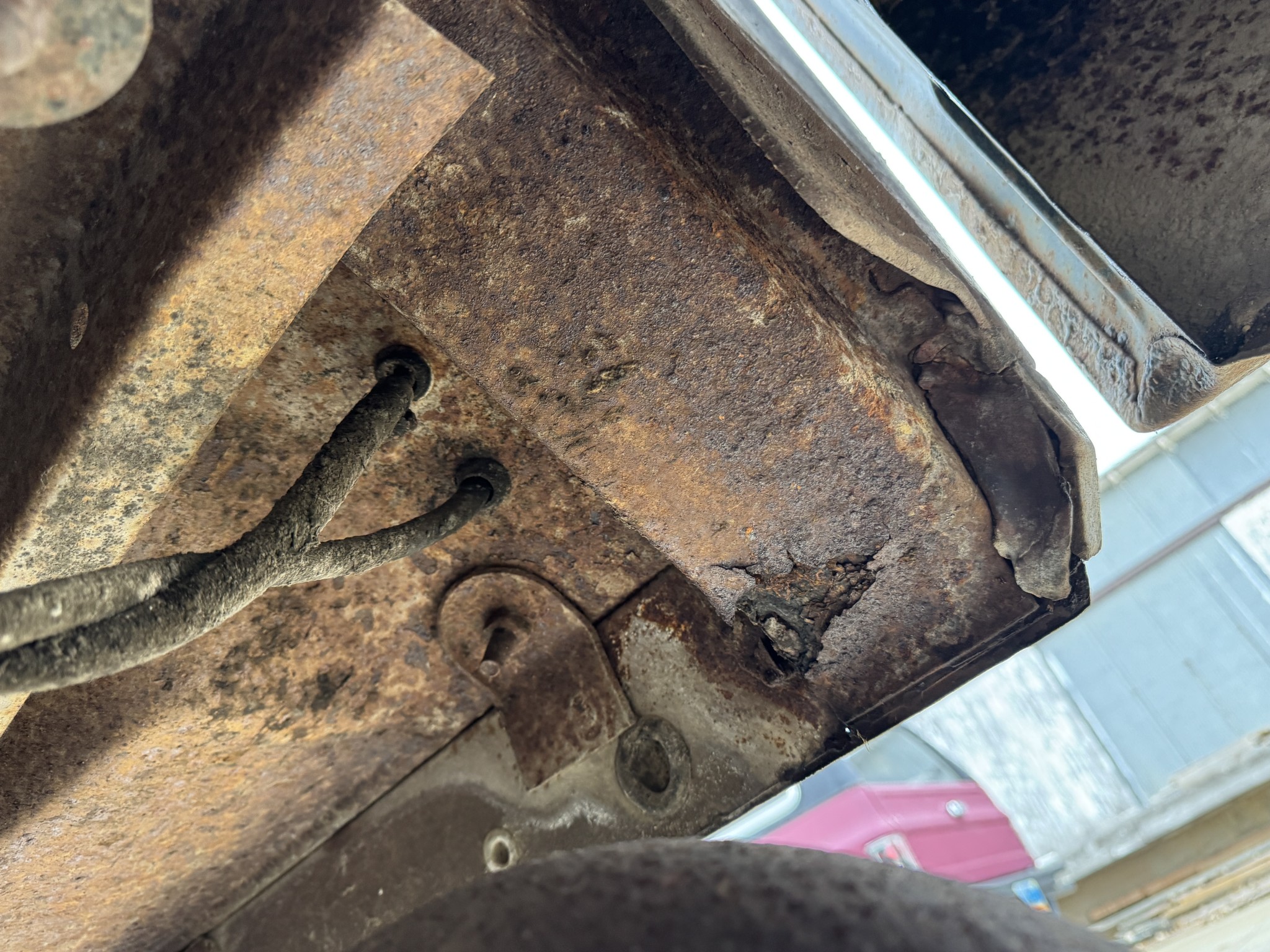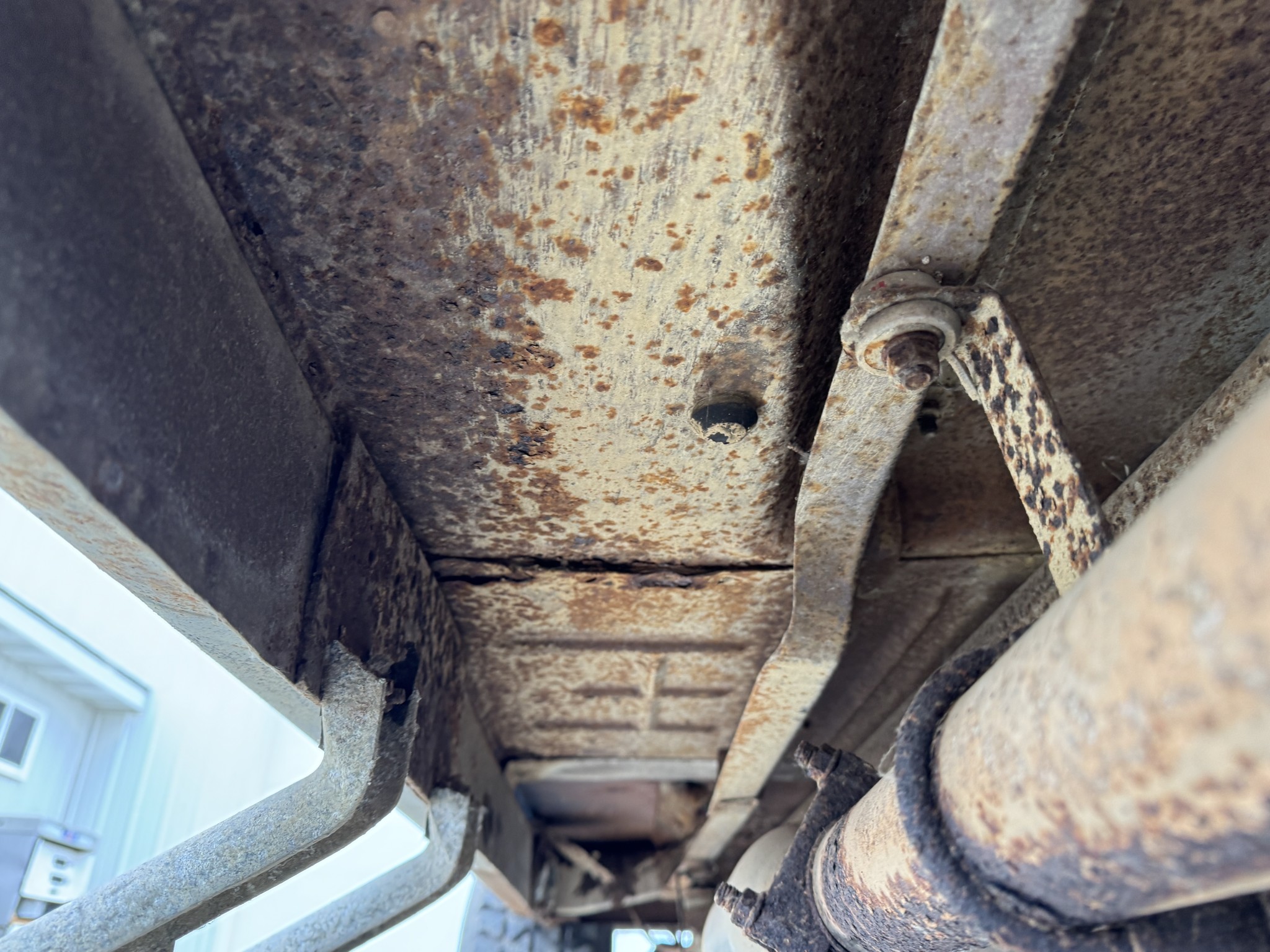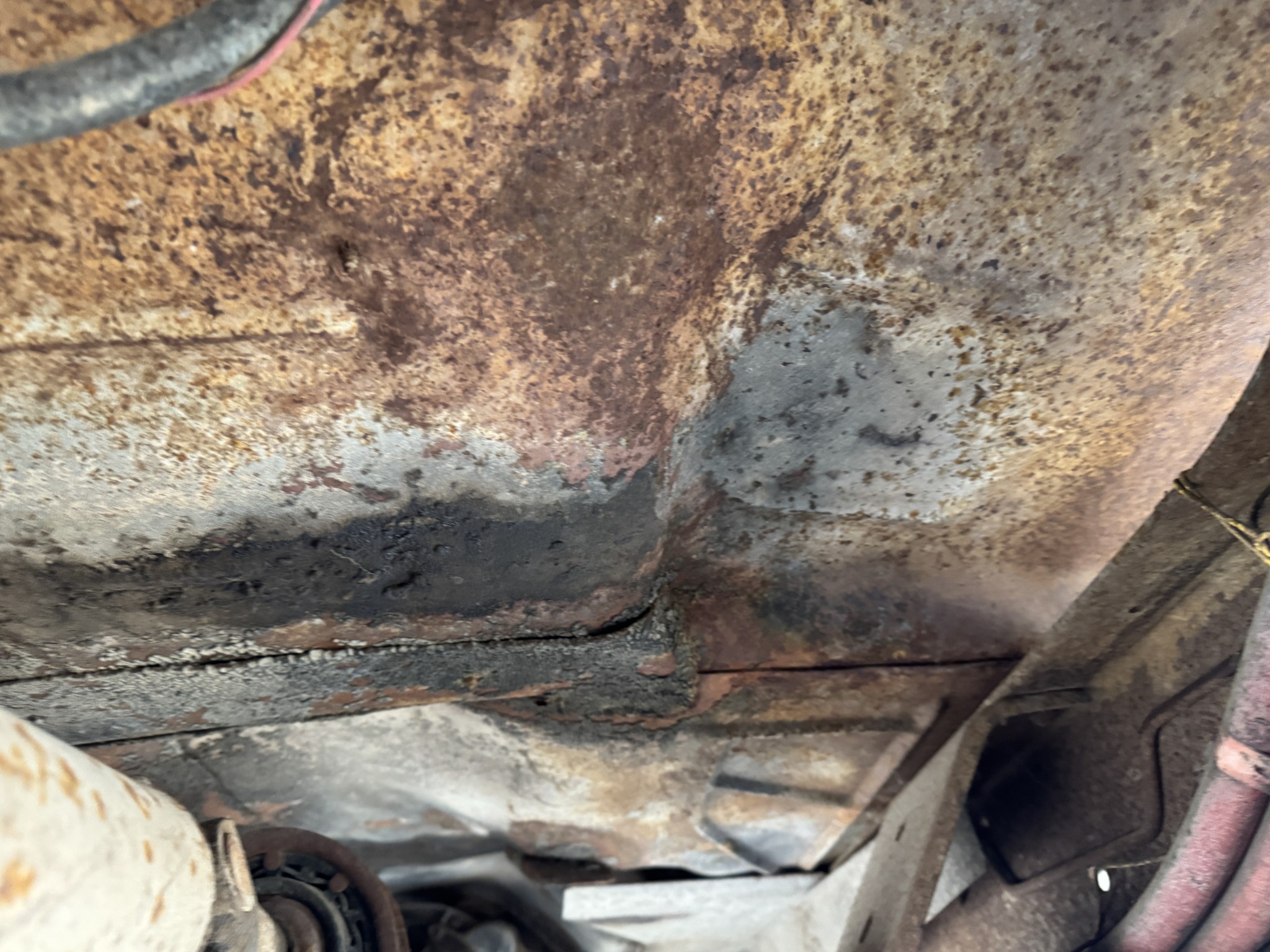 UNDERNEATH- The underneath is solid , has some floor rust.