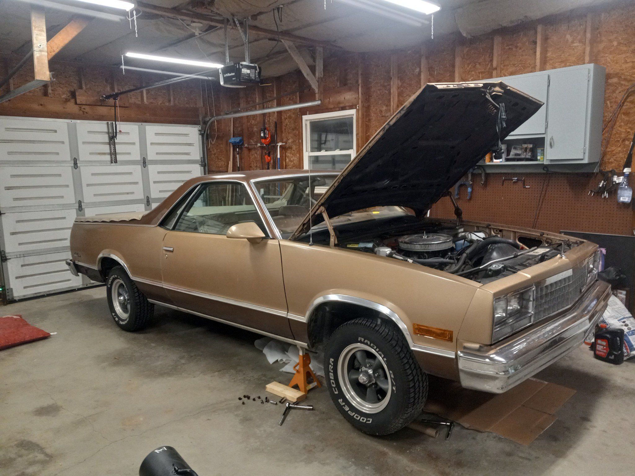 Seller’s Description: 1987 GMC Caballero Amarillo Last year made one of 1884 produced.new edelbrock 4bbl new brakes lines shoes pads rotor master cyl per booster dual Exhaust radiator condenser Compressor springs shocks ball joints springs trailing arms. Comes with truck cap and tanoue cover. Extra parts plus 6 original wheels center caps. Has new American Racing Wheels/ Tires.$9500 or trade for 1957 to 1970 car .