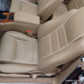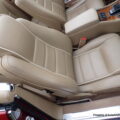 Full leather interior, burl-wood inlays, plush carpeted mats (she comes with custom fit Coco mats as well), one rides in typical Jaguar comfort.