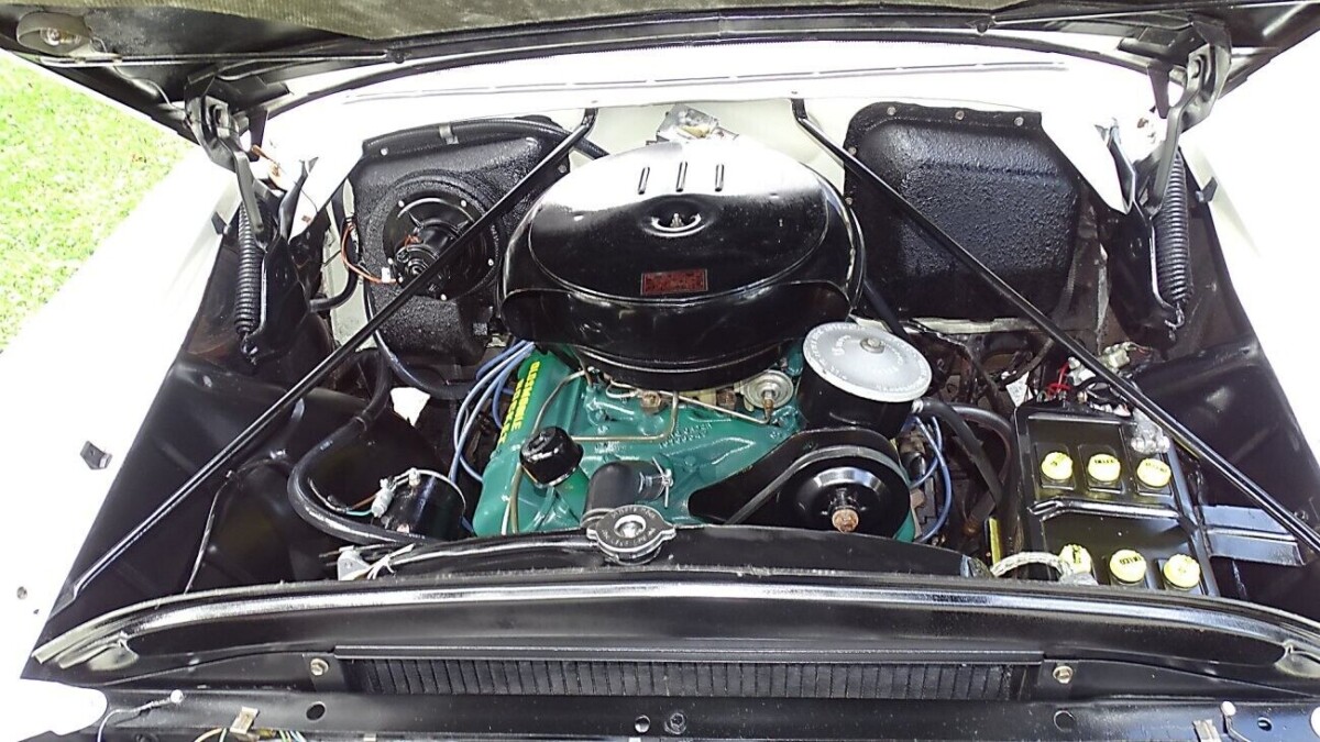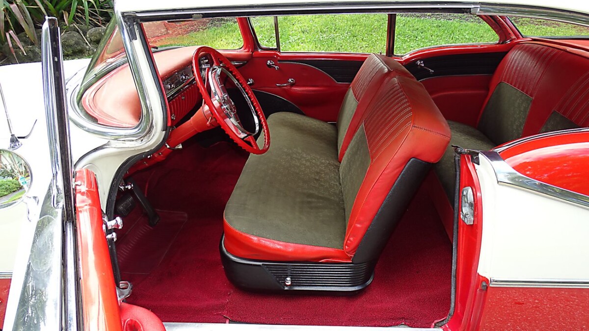 The heart of this Holiday is its Rocket motor, a 324 cu. in. V8, which is basically a bored-out 303. The 324 was produced from 1954 through 1956 and it was revered by hot rodders, who often yanked them out of original cars like this Holiday to reuse elsewhere. In 1954, this engine would generate about 185 bhp, but Oldsmobile improved the 324 over its short production time frame by raising compression and using better camshafts. In 1956, the motor’s horsepower had increased to 240 when paired with a four-barrel carburetor. That was respectable horsepower considering the competition. This Super 88 comes with a four-speed Hydra-Matic transmission, an extra-cost option in the day. The seller indicates the car runs and drives well with no mechanical issues.