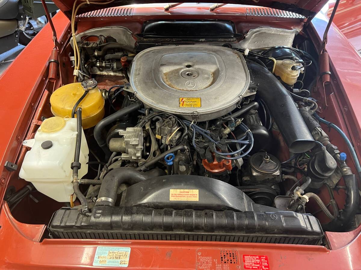 The first iteration of the 380SL motor had a single-row timing chain, which failed on occasion. This engine has been upgraded to double-row timing chains, something the factory did beginning in 1984. Other than that, this aluminum 3.8-liter V8 is robust if slow off the line; horsepower comes in at only 155. Despite Mercedes’ attempt at economy, driving a W107 SL will make you believe there’s a hole in its gas tank; the best you can hope for is about 15 mpg. North American SLs were equipped with automatics; manual transmissions could be had in Europe. The odometer indicates 70,000 miles. The car comes with original documents and receipts.