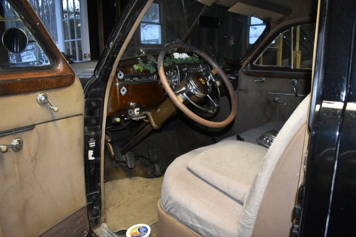 The mileage is listed as 23,000. That is super low and some interior wear like the steering wheel doesn’t seem to coincide with this mileage claim. However the car is almost 80 years old, and time does take its toll. It is just too nice for 123,000 miles. Overall the interior is in very good shape with the exception of staining of door panels. The display on the dash may be some sort of memorial to the late uncle.