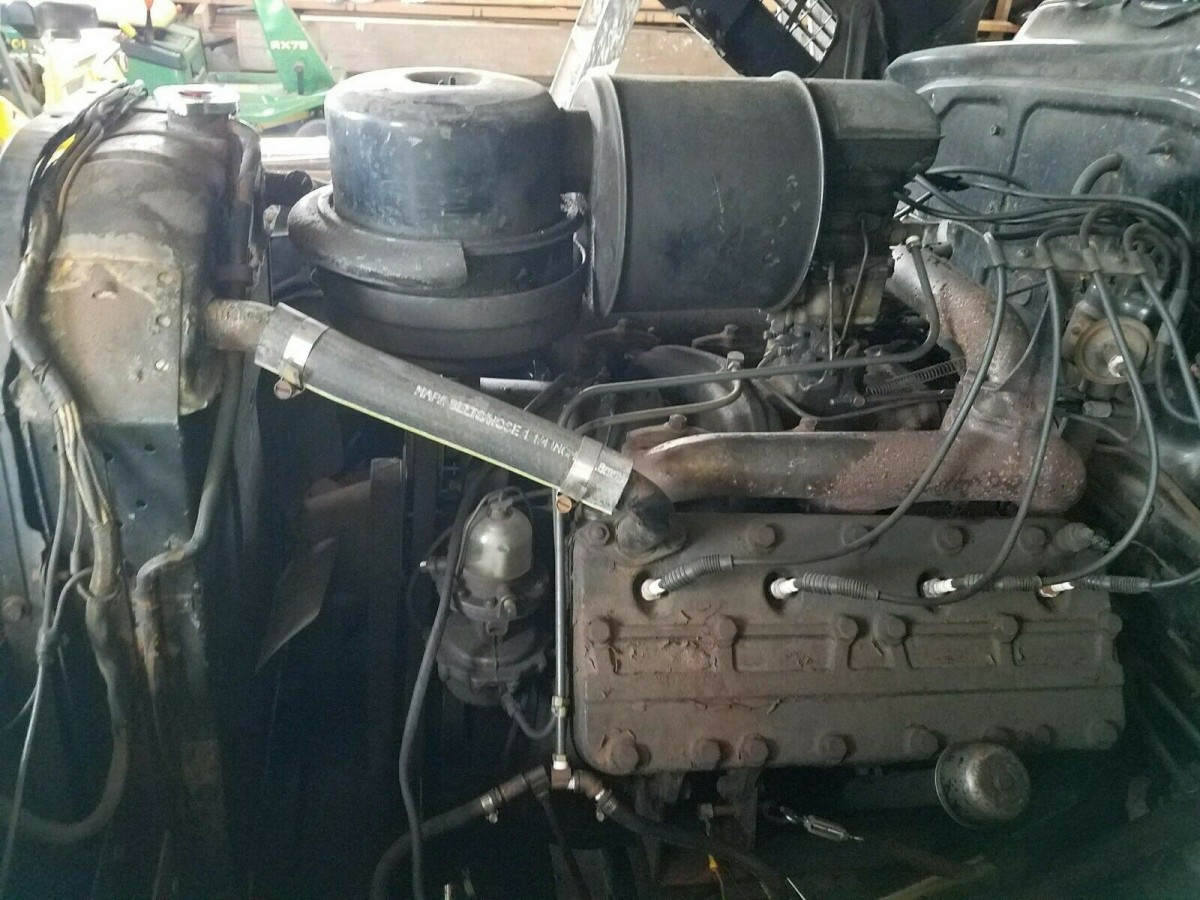 The car ran when parked, as is the story with all cars. However the car doesn’t look like it had been sitting for long, but a quick verification of turning the engine over by hand before starting might be in order. It looks like the engine has never been disturbed, so one might expect the 346 V8 to start right up with a new 6-volt battery.