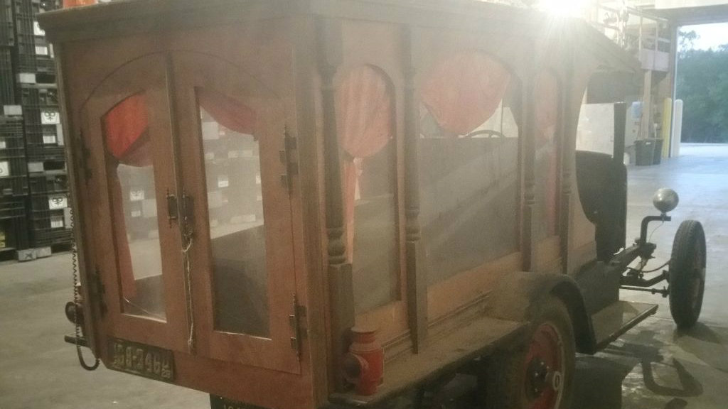 I don’t really “get” the whole rat rod thing but this looks like a fun little toy for someone who does. Certainly the right time of year to be selling a hot rod hearse for halloween.