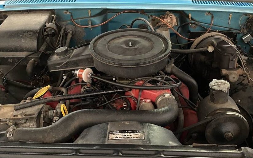Powering this rig is a 392 CI “Comanche” V8 engine that generates somewhere in the neighborhood of 235 HP. It’s said that “It runs good, drives good” but nothing is detailed about its specific status i.e. original, rebuilt, etc. and the engine image isn’t too revealing. The listing states a mileage reading of 40K miles but the text then adds “The odometer is in the 30k but I don’t know if it has been flipped“. I’d guess it has been once around but as to how many miles are on the engine, in its current state, is anyone’s guess. The listing also references a manual transmission but the interior image tells me that this Travelall has a steering column shifted automatic gearbox.