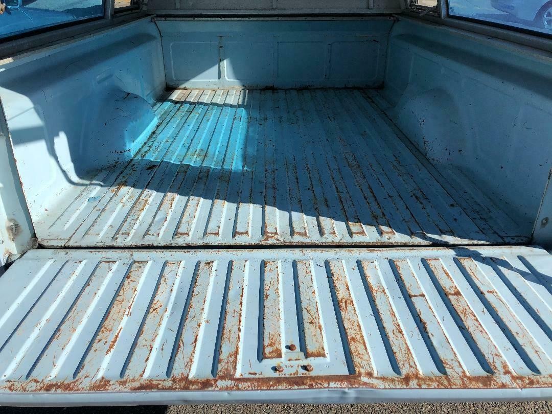 I own one of these now. Nevadahalfrack could not stand to be “parked” behind me on the highway the other day on our way to the mustang auction. Mine is an ’81 with a shell and 5 speed. My wife calls it the rattle trap and refuses to drive it. I use for junk yard runs and trips to the parts store. It gets high thirties mpg just doing short jumps to town and mid fourties on the highway. We live at 4,300 feet and go up from there which means foot on the floor half the time going up the hills and 50% throttle going down hill. I am only 5’10″” and I drive with the seat back shoved into the cab back wall/glass. I originally felt at home sitting in the seat as the positioning to the steering wheel and shifter were the same as the Sciroccos that I once had. The headliner falling down is an age thing. However, from what I have seen, the tailgate is the last thing to have a rust problem with. So I would be very suspect of this one. Most likely bondo behind the last paint job. Mine is not rusty (central California /northern Nevada homes) for anyone interested in one. Yes Jessie, I will list it in a couple of months when I am done with a different daily driver project.