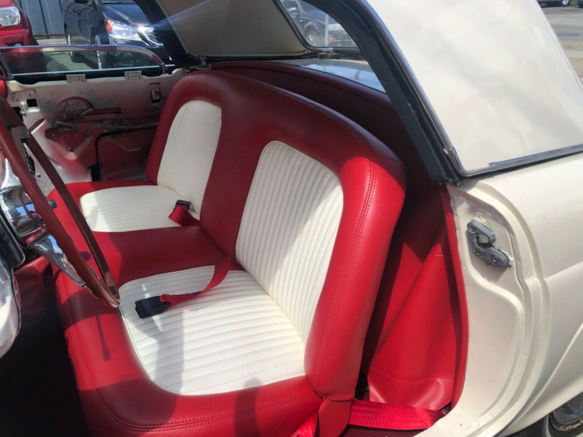 The interior of the Thunderbird manages to successfully be something of a highlight but also has some obvious lows at the same time. The red and white upholstery on the seat looks extremely nice, while the carpet appears to be just as impressive. The dash itself looks very good, but there are a few obvious flaws to be addressed around the interior. The door trims are not fitted to the car, and the owner makes no mention of them being present. Similarly, the original radio is missing from the dash, the original clock has been swapped out for an aftermarket temperature gauge, while the lenses on some of the gauges, most notably the speedometer, have become quite crazed and discolored. Having said all of that, replacement clocks are pretty easy to find for around the $155 mark. I have also had no problems locating a full set of gauge glass that should help to return the existing gauges in this vehicle to as-new condition. The price is around $120 for the lot. Ford never perceived the Thunderbird as a sports car, but aimed at providing a more luxurious and “softer” feel than Chevrolet provided with the Corvette. With that in mind, Thunderbird buyers received features such as power windows and a power seat.