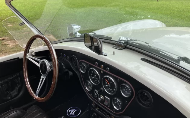 The beautifully crafted body sits atop a dual plane tubular space frame, and the dash is adored with handsome Smiths gauges. Leather seating surfaces and plush carpets make the cabin feel luxurious, with high quality materials throughout. The seller notes his GRX benefits from a recent respray along with new carpets, floor mats, and Connolly leather imported from the U.K. The wheels have also been replaced with pricey Dayton AC Cobra 70-spoke wire wheels and recent Vredestein tires. While expensive, the build quality is exceptional and the attention to detail won’t be matched by many other replica Cobras on the market today.