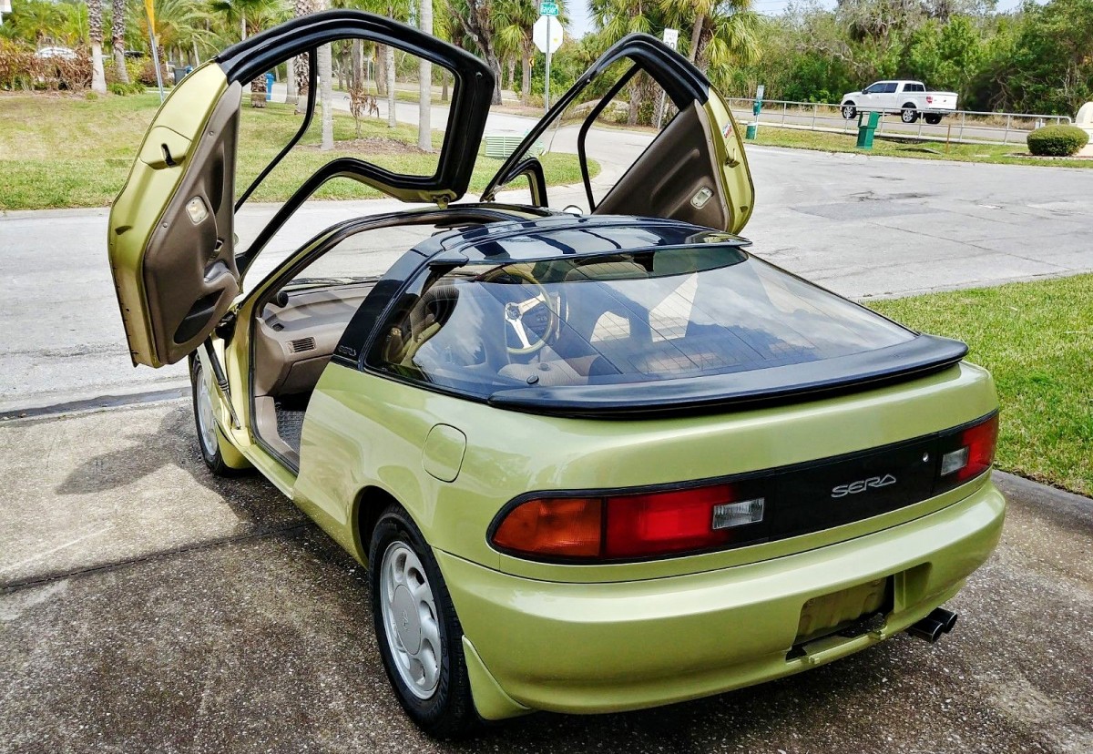 If you’ve seen one gullwing-doored Toyota you’ve seen ’em all.. What?! This unusual vehicle is a 1990 Toyota Sera and yes, those gullwing doors are factory correct. It’s listed here on eBay in New Port Richey, Florida. The current bid price is just over $200 and there is no reserve! I wrote about one of these cars about a year ago here on Barn Finds and that one sold for $16,089.99! Whoa. Don’t expect to nab this one for a few hundred or even a few thousand. Let’s check it out.