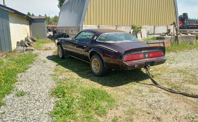 The interior looks to be pretty nice with Pimlico tan cloth seats and the two tone brown and tan interior. This car has the deluxe interior with an automatic transmission but no power windows or T-Tops. This was the last year for the second generation Firebird that ran from 1970-1981. As the picture shows below, the car is still tethered to a tow rope.