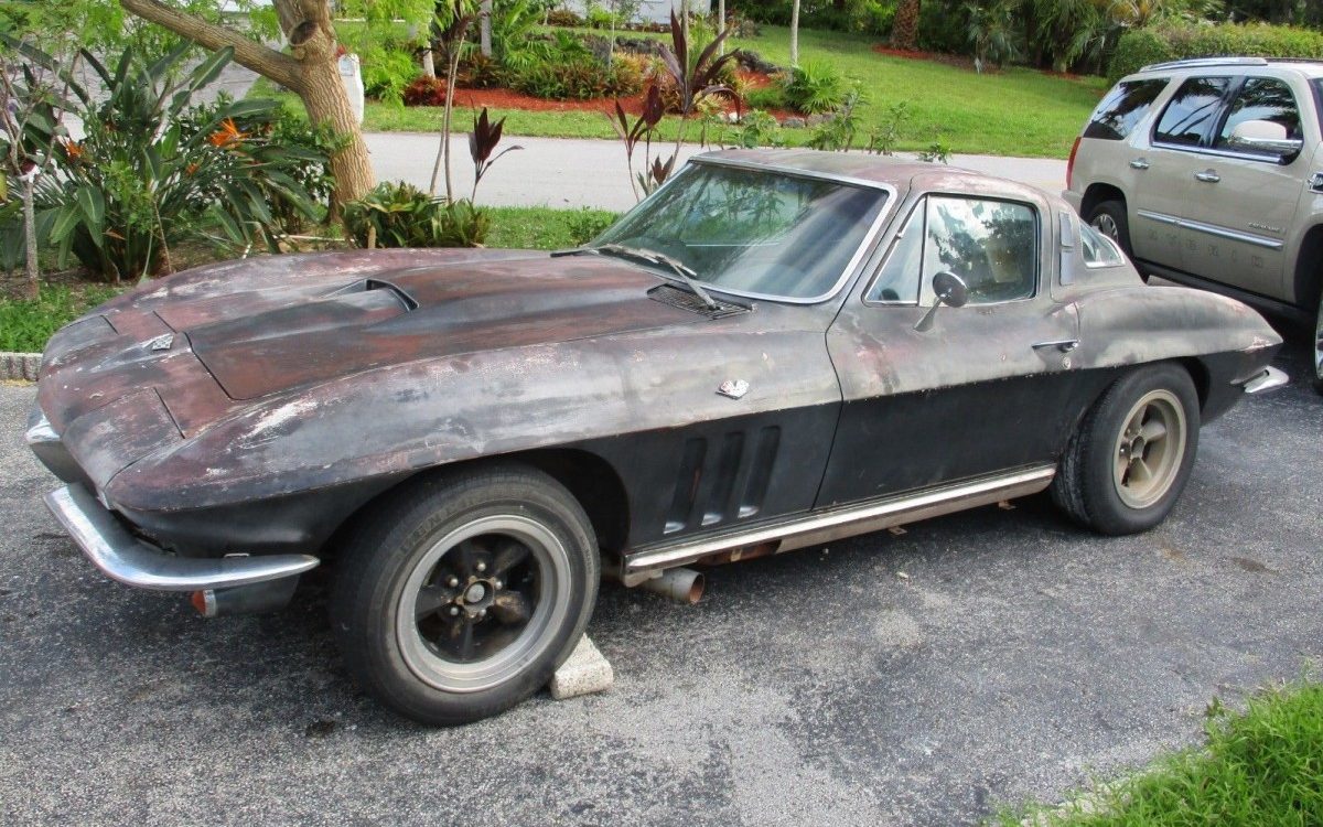 FROM 8/19/18 – If you are looking for a master of disguise, this is not it. Or is it? If you can tell, then you are a master. This black 1965 Chevrolet Corvette with 34,449 miles is currently sitting at an auction price of $39,999 with no bids and no reserve. Located in Miami, Florida, the car does seem to be in good shape and has been garage kept. You can visit its listing on eBay.
