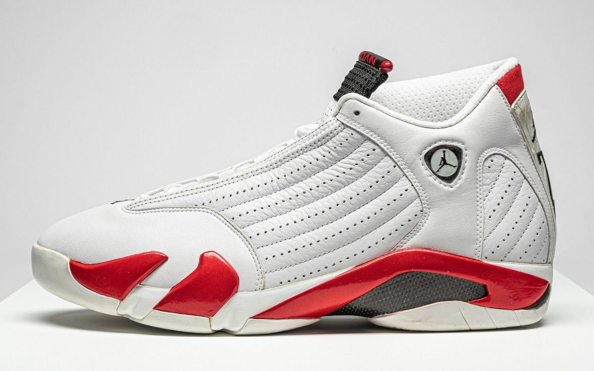 With the recent airing of the ESPN documentary “The Last Dance,” it’s no surprise that a pair of shoes from that era made it into the auction. They are a pair of MJ-coded “Chicago” Jordan 14 and were worn by Jordan during practice between games of the 1998 NBA finals. They are estimated to sell between $6,000 and $8,000.