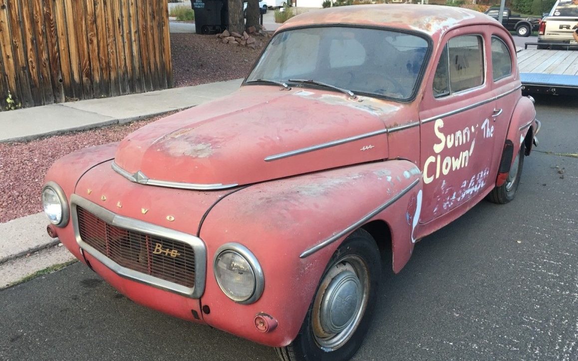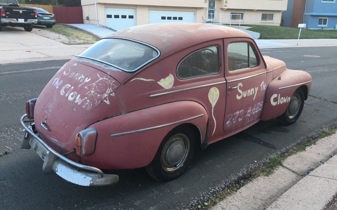 always loved the style of this Volva..reminds me a little of the 40 ford. Also pictured one of these with a v8. This one has a lot of potential. Get that 4 banger going and have fun. Think I’d remove the clown lettering, whats that disorder that’s the fear of clowns??