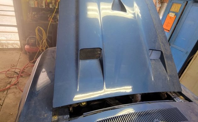 Has the typical “bow” in the hood, but doesn’t appear too bad. Seller will have to prove drive line components match the VIN to fetch top dollar.