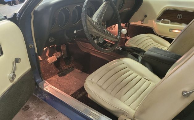 Underneath, things appear solid. The seller calls the floors and torque boxes “good” and gives the car a 7 out of 10 overall. While that kind of rating is always subjective, it suggests this Shelby is better than your average project, especially when you consider how many of these were chopped up or modified over the years. The 428 CJ is reportedly free and turns, but it’s been sitting for 15 years, so it’s safe to assume the mechanicals will need a full go-through before it’s roadworthy again.