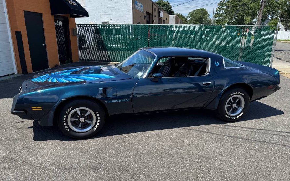 Having bought a new Admiralty Blue 74 400 4 speed Trans Am in August 74, I have to say I do like this car. My 74 was even more basic, with the standard vinyl interior and no console, but it did have the tilt column and optional AM/FM stereo radio. I still prefer the 74’s smaller rear window and parking lamps under the bumper over the 75’s big back window and p/lamps in the grill, but this is still a nice example of a mid 70’s TA.