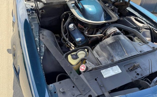 This car has manual windows and no air conditioning. I don’t seen any other options that stand out like tilt steering or rear defrost either. The interior is Code 19V1 which was a black vinyl standard interior. The upgraded custom interior included the “horsecollar” seats and upgraded door panels. The interior looks to be in very nice condition with no rips or sun fading evident. The car is said to run and drive nicely. There has been repair work done to the floor boards and trunk.