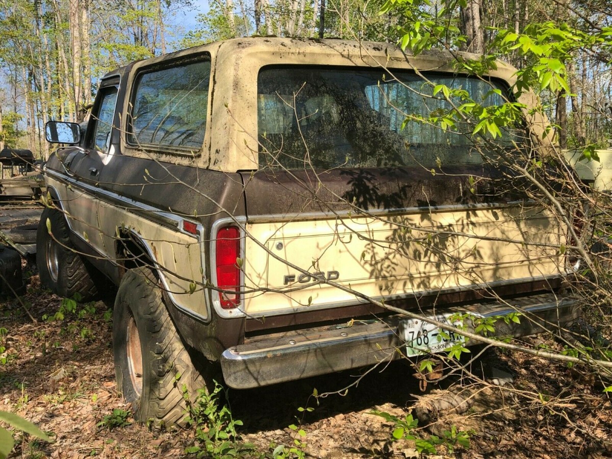 The interior isn’t in great shape, with the driver’s seat cloth fairly well torn up; it’s definitely past the point of a quick stitching job. The good news is the passenger side bucket and the rear bench both appear relatively untouched, so it’s possible the Bronco was typically used by a solitary driver. No other details are offered on the interior accommodations, like whether the air conditioning still works or all the gauges. The interior is simply described as “intact”, and with no mention as to the condition of the floors, one would hope the Tennessee climate has prevented them from rusting out.