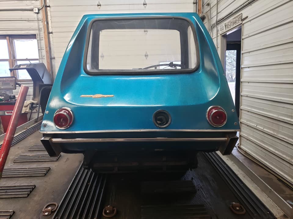 Love the ’65 Chevy tail lights. Well, an enclosed winter vehicle sounds attractive, especially if you lived in Siberia, or Nome, Alaska, but other than bar hopping, I don’t see a big call for these. The JLO was a poor motor, I think they ran hot or something, always a pain to start, and with no real inside heat, that demister won’t do much, those windows will fog up pretty fast, and you’ll have to keep the windows open, defeating the purpose. Pretty classic “swing and a miss”. Nice try, tho.