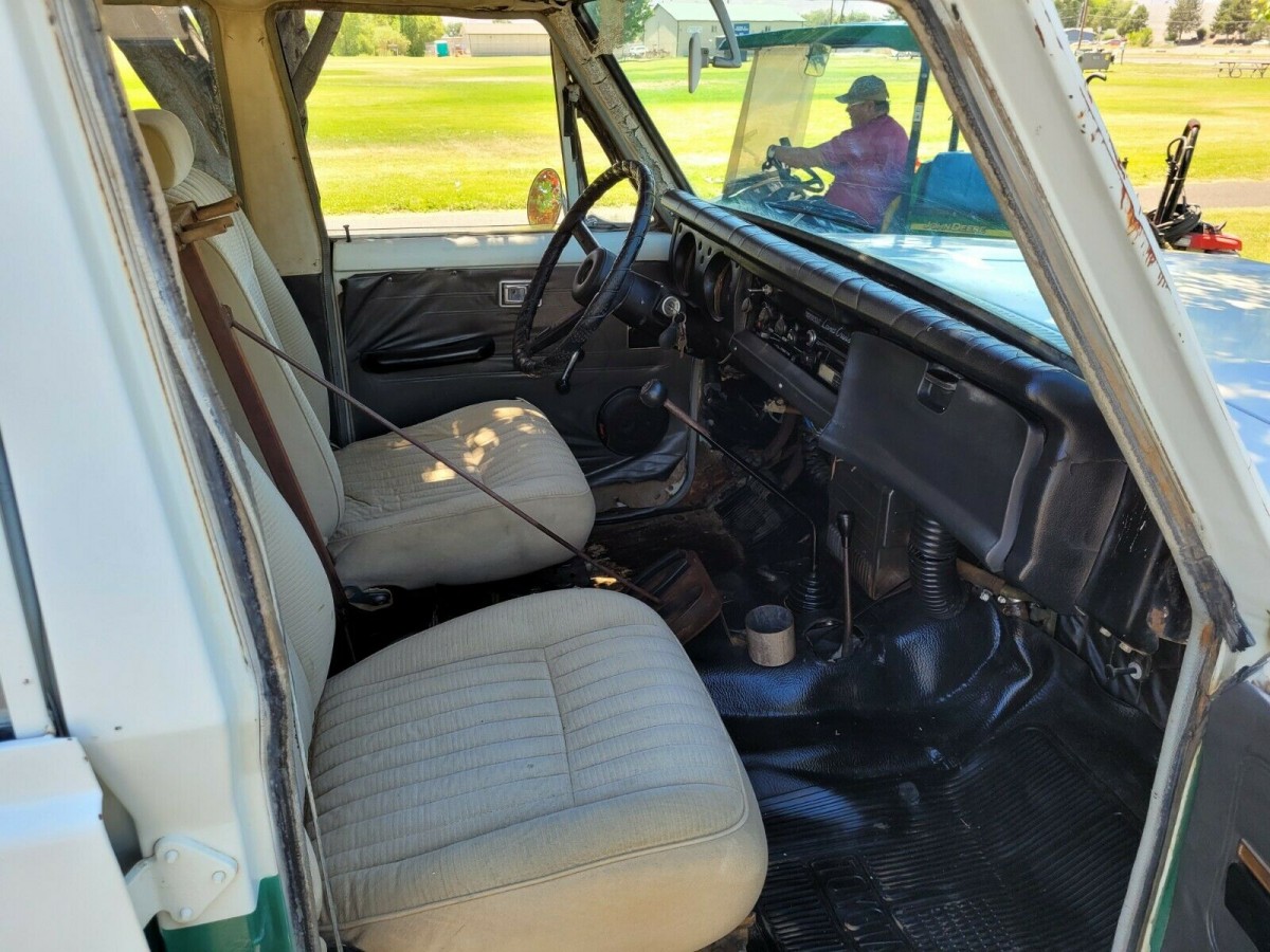 The seller has listed it locally, and I wouldn’t be surprised to see this one disappear before the listing ends. The fact is that most FJ55s that aren’t restored show up with rust everywhere and half-dead drivetrains, as these things get beaten like a stubborn mule when not owned by collectors. Blame it on their resiliency, I guess, which is what tends to happen to old trucks that were never intended to be collector’s items. The interior is in decent shape with good cloth still on the seats, though the seller notes it will need sun visors, door panels, headliner, window gaskets, and more to make the inside more livable.