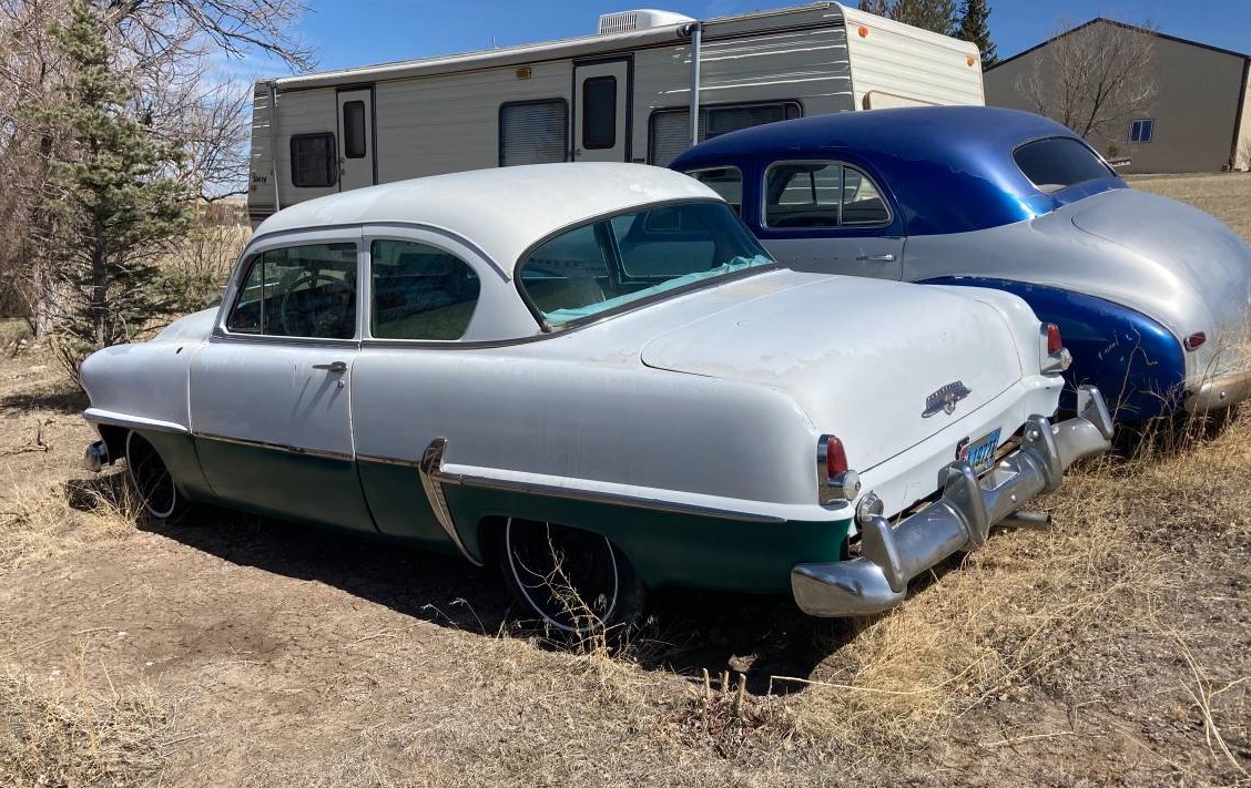 There’s also a pair of 1950s Chevies and Plymouths out in the yard that isn’t as nicely preserved as the three indoor cars. And there are a couple of project automobiles in the works that might work better as donors than restoration candidates. The black motorcycle looks rather sharp, but I can’t place the brand, model, or even the displacement. If I were closer to Cheyenne, I’d want to check out the Pontiac!