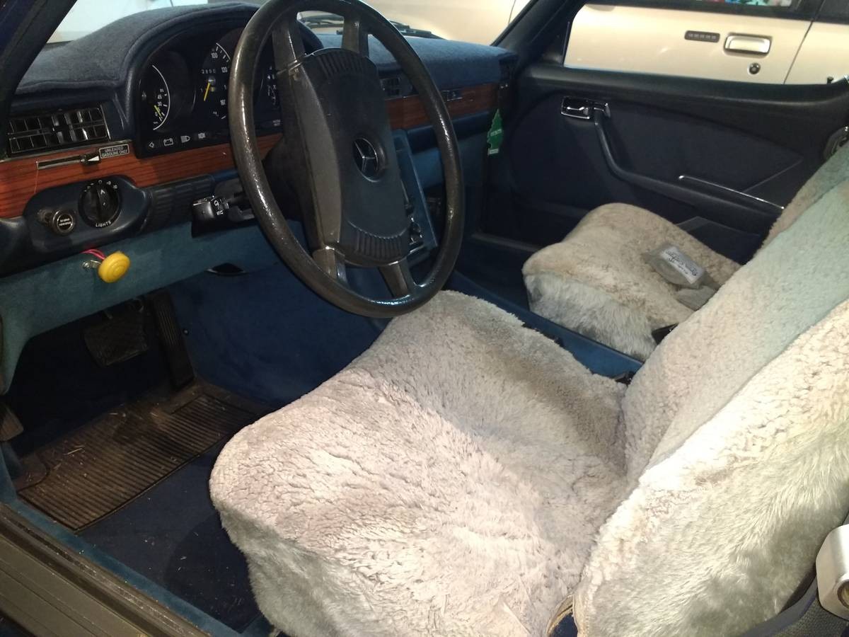 This example doesn’t appear rough at all, with the listing noting it’s been owned by the seller for 45 years and was repainted “decades ago.” Photos indicate the interior is in good shape overall, with a surprisingly stain-free headliner and sheepskin covers protecting the front buckets. The Mercedes is listed for $15K.