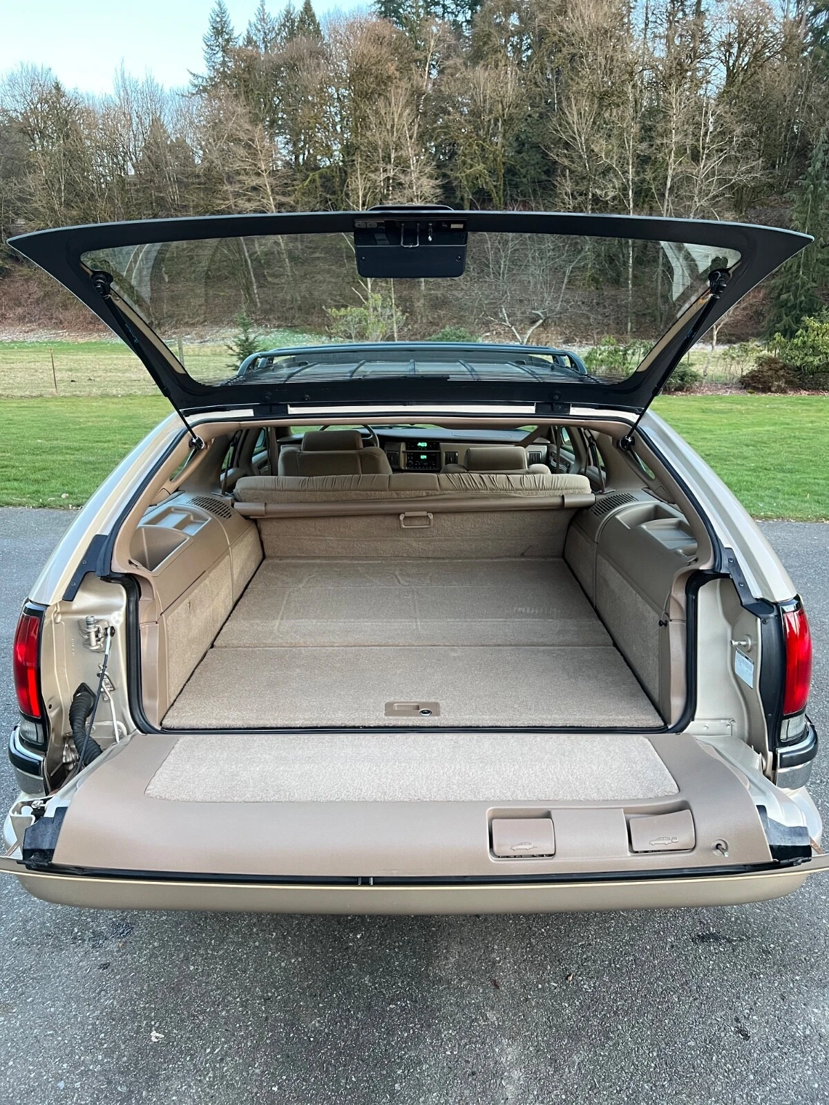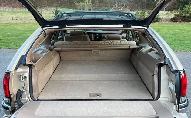 The appeal of these large estate wagons is multifaceted. The obvious appeal is the combination of rear-wheel drive, a V8, and a long-roof configuration. However, there’s also endless utility offered by way of having a rear-facing third row if passenger conveyance is your priority, and if you just need space for stuff more than people, simply fold the seats down and enjoy your acres of cargo space. The carpeting is in beautiful condition and that’s not easy with a light biscuit-colored cabin, so it’s evident that this is both a low mileage vehicle and one that’s been loved. The seller includes photos of the original owner’s portfolio and window sticker, both of which are also in excellent condition.