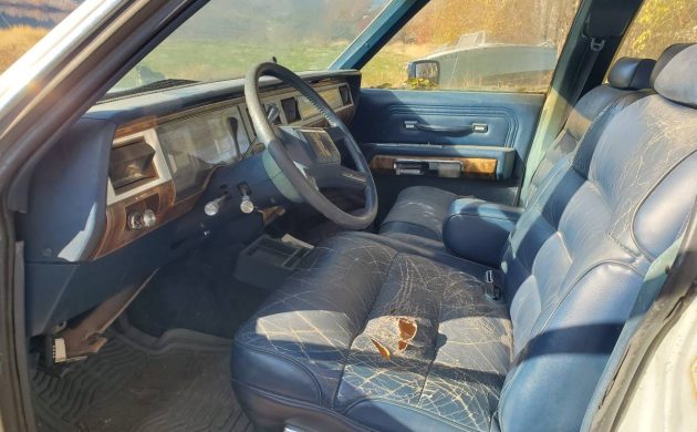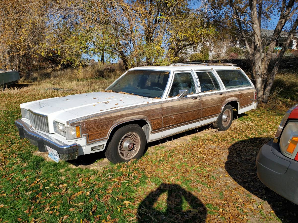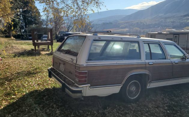 The dead giveaway about the model year potentially being incorrect are the headlights. In 1988, the front end was refreshed across the lineup, and the nose got a bit softer with the headlight assemblies sitting flush with the hood and nose section. This not a big deal, but it’s the reason why I wrote this up as a different model year than what the seller has in the ad. Regardless, there’s a lot of underselling going on with this listing, The seller says the “…interior and exterior are in rough shape,” and while it’s far from perfect, if it’s rust-free – well, I’d call that better than most. The wood paneling is still intact, and the Mercury retains its factory turbine-style wheels.