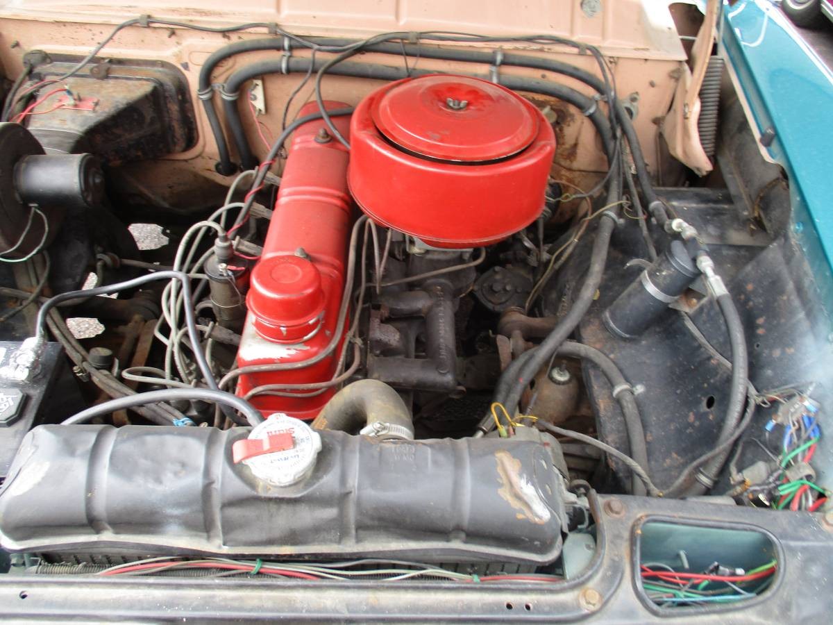 This was the moment where I was initially slightly disappointed, but I’m a big boy, and I’ll get over it. I was really hoping to find a V8 under the hood, but we get a 223ci 6-cylinder engine. I can live with that because the transmission is the factory overdrive manual unit. The engine does negatively impact the value of the car, but this is almost completely negated by the transmission and A/C, so it really is a case of swings and roundabouts. Some of the wiring in the engine bay is also a bit untidy, but this should be an easy fix. The owner says that the car runs and drives well, and in this shot, you can also see evidence of the car’s original Cameo Coral paint.