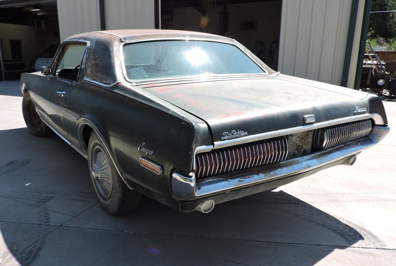 By the age of eight or ten I knew these Cougars had the amazing sequential tail-lights and always hoped to see them in action. Looking fairly complete, original, and straight from all angles, this cougar has some rust, but the seller includes a host of under-car pictures that don’t look too bad. The vinyl roof appears thoroughly weathered or possibly gone. Comments from readers with keen eyesight welcome below. Newly mandated for 1968, the side markers distinguish this second-year car from the 1967 Cougars.