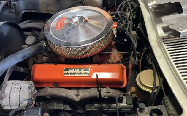 The engine runs and has good oil pressure, but it hasn’t been given a tune up. The carburetor seems to be rebuilt and the “old Corvette guys” have replaced the extremely leaky valve cover gaskets.