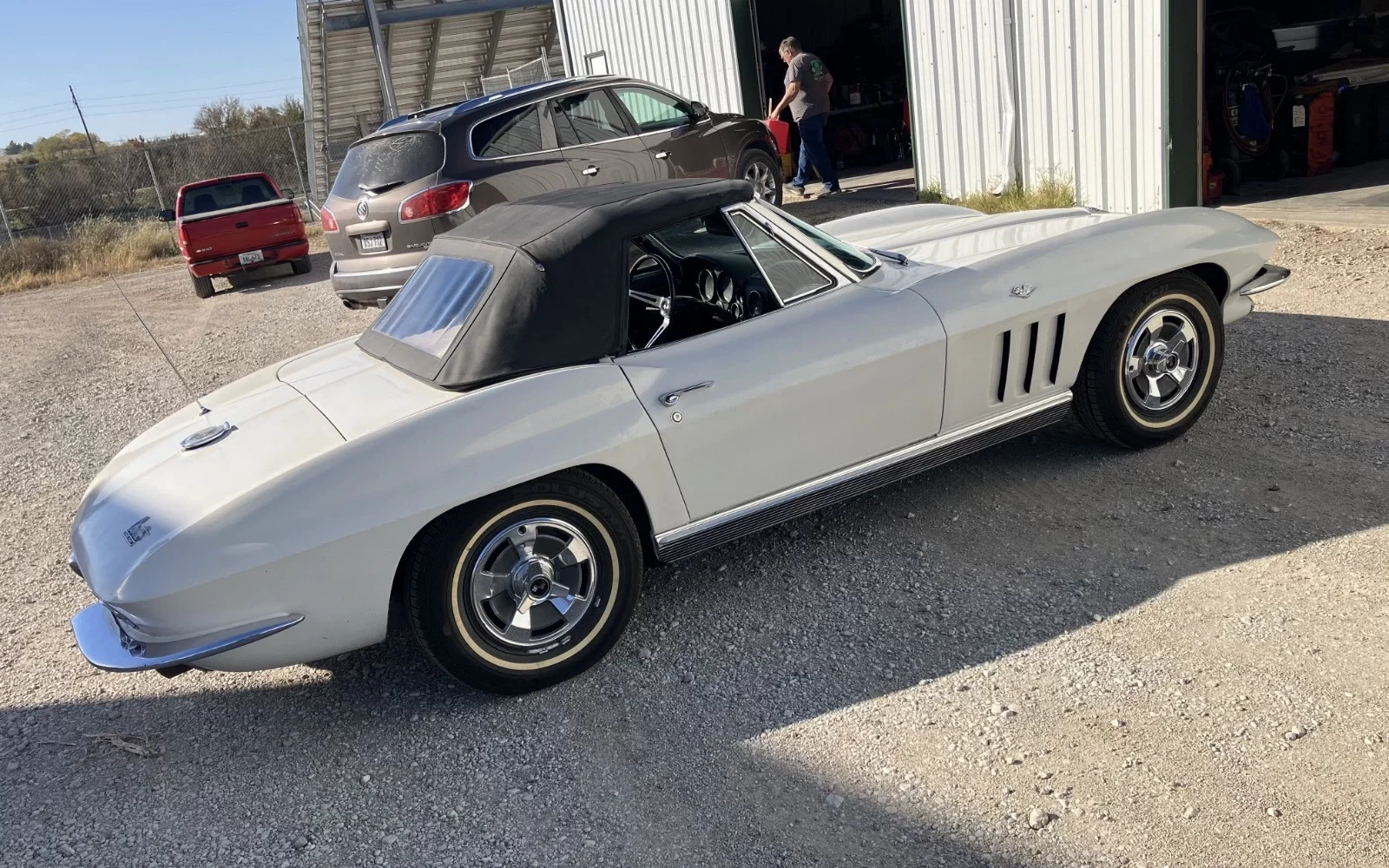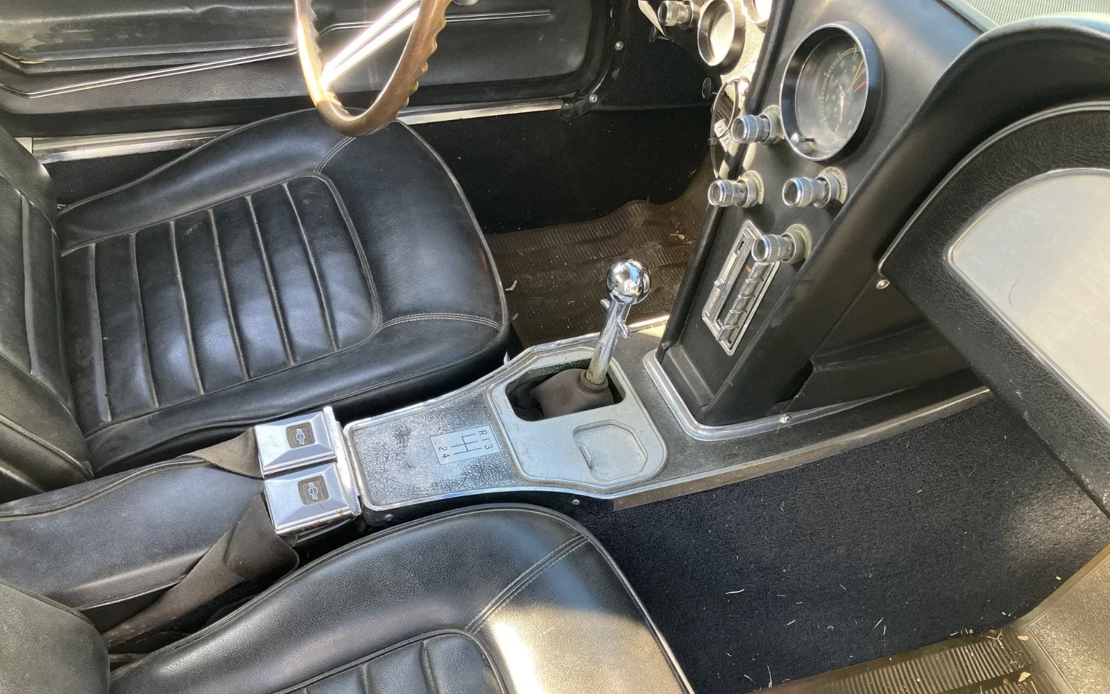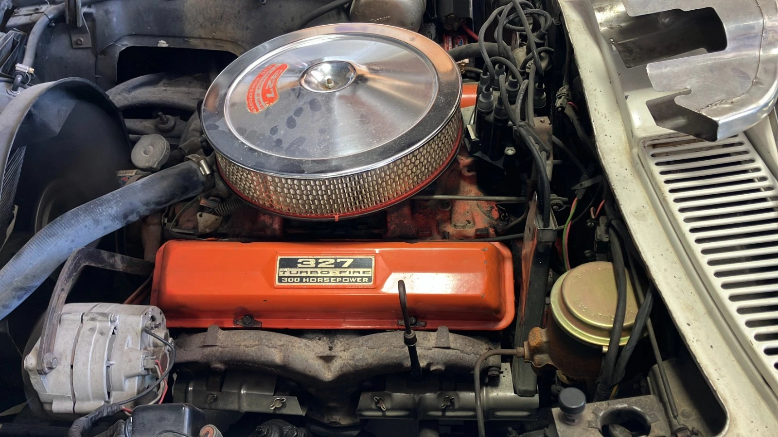 The engine runs and has good oil pressure, but it hasn’t been given a tune up. The carburetor seems to be rebuilt and the “old Corvette guys” have replaced the extremely leaky valve cover gaskets.