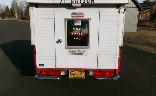 These early Datsun and Toyota pickups have been appreciated by Japanese truck enthusiasts for years but they exist outside of a realm that doesn’t get the same amount of love as a four-wheel drive variant. The two-wheel drive trucks have less mobility off road and in general are more fragile from an overlanding ability; however, like any Japanese truck, reliability from a purely mechanical standpoint is still pretty great. The Datsuns are not as appreciated as the older Toyotas, so you can buy one of the best for reasonable money. This one has the added benefit of a period camper shell that seemingly fits the bed perfectly; even better, the shot of the bed shows the original, patina’d tailgate still resting inside.