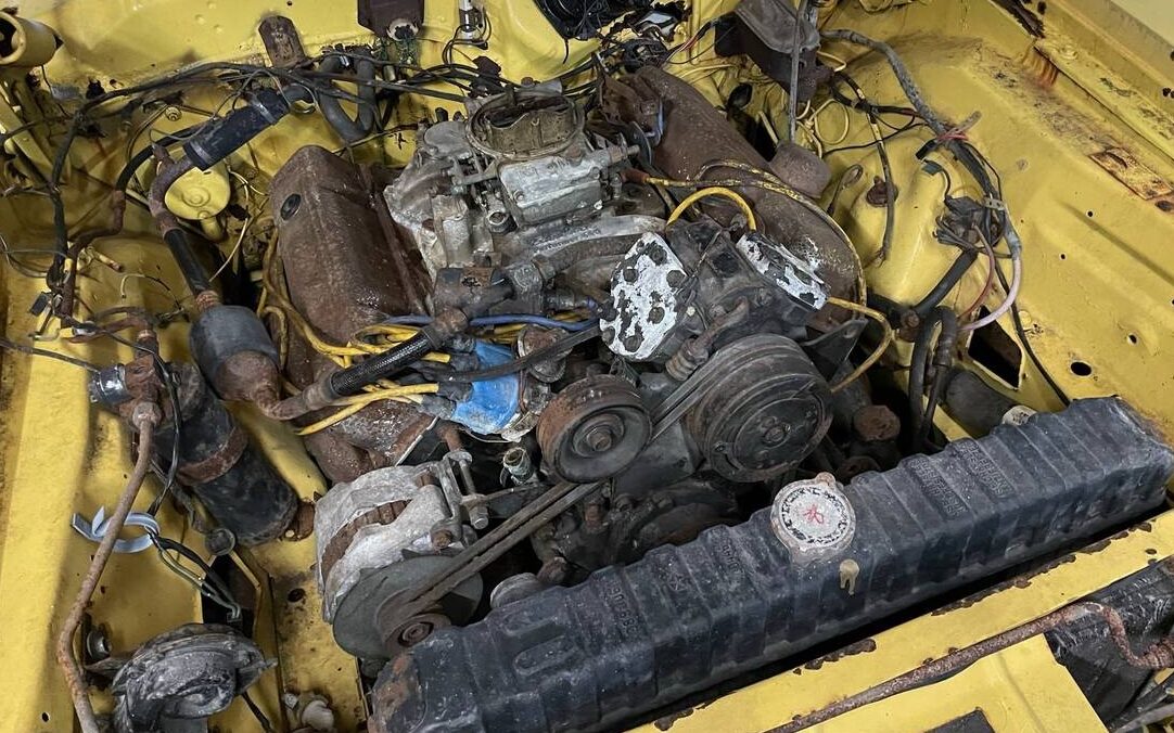 I am on the fence here. Not as popular as the late 60s models but after watching Graveyard Carz for many years, I know that all the body panels are available. No clear comment as to whether it is numbers matching but it is complete. This would suit somebody with excellent welding skills and lots of time. The alternative would be to farm out the basic bodywork and get it back in primer ready to paint and reassemble. It would be stunning restored in this original color but it would have to be a “thing of the heart” and not for resale because the post 70 MOPARs do not fetch the same money as the earlier stuff.